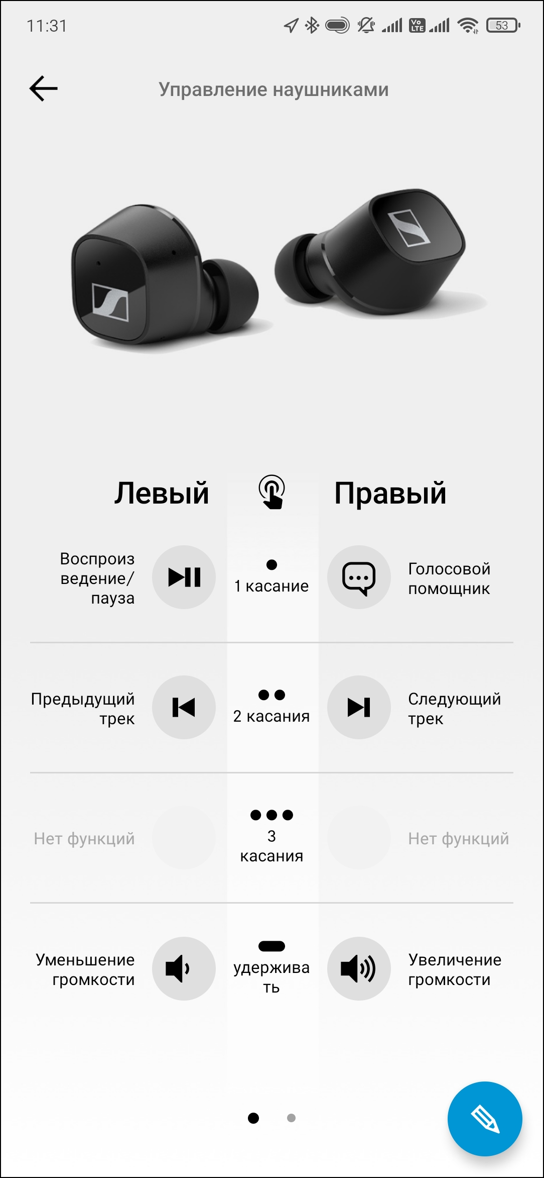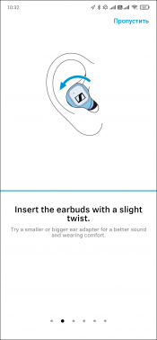Настройка гарнитуры осуществляется при помощи приложения Smart Control, разговор о котором мы начали еще в тестировании прошлой версии гарнитуры Sennheiser Momentum True Wireless. При первом включении наушники сами активируют режим сопряжения, в дальнейшем его можно запустить принудительно, удерживая обе сенсорные панели в течение нескольких секунд. Подключение гарнитуры нужно предварительно осуществить «классическим» способом, а уже потом добавить устройство в приложение. После того, как СХ 400BT найдена и добавлена, пользователю предлагается познакомиться с краткой инструкцией.