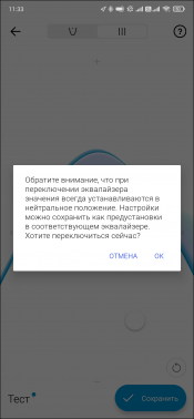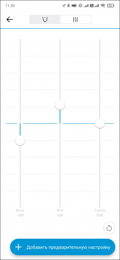 Обновился и эквалайзер. Управление перетаскиванием одной точки осталось, равно как и возможность сохранять пресеты. Как мы уже не раз отмечали, чуть подстроить звук под себя это решение вполне позволяет. Но все же далеко не всем оно удобно, к счастью — теперь есть альтернатива. Можно переключиться на классический вариант эквалайзера. Правда полосы всего три — хотелось бы побольше, но и так уже хорошо.