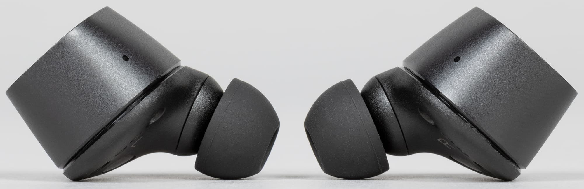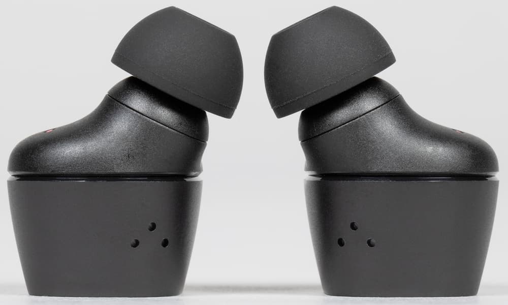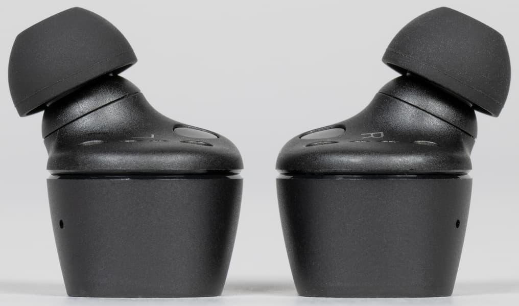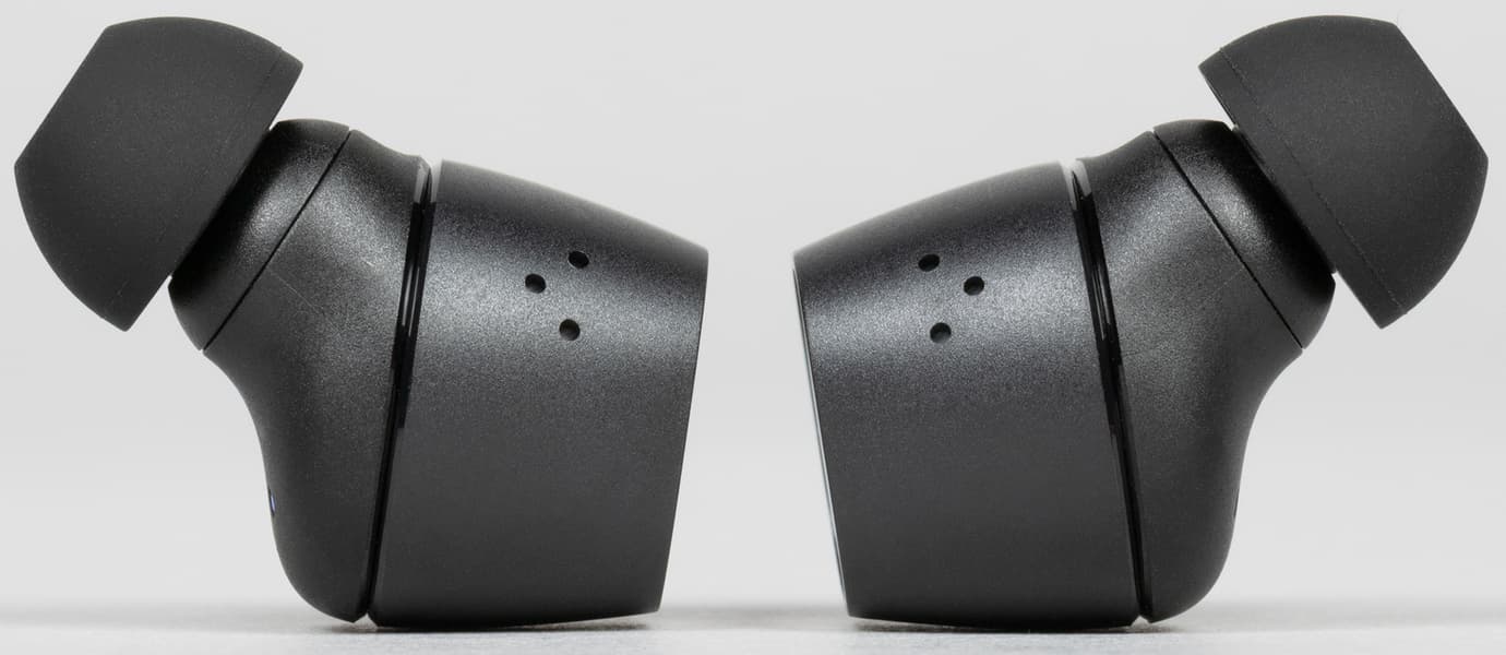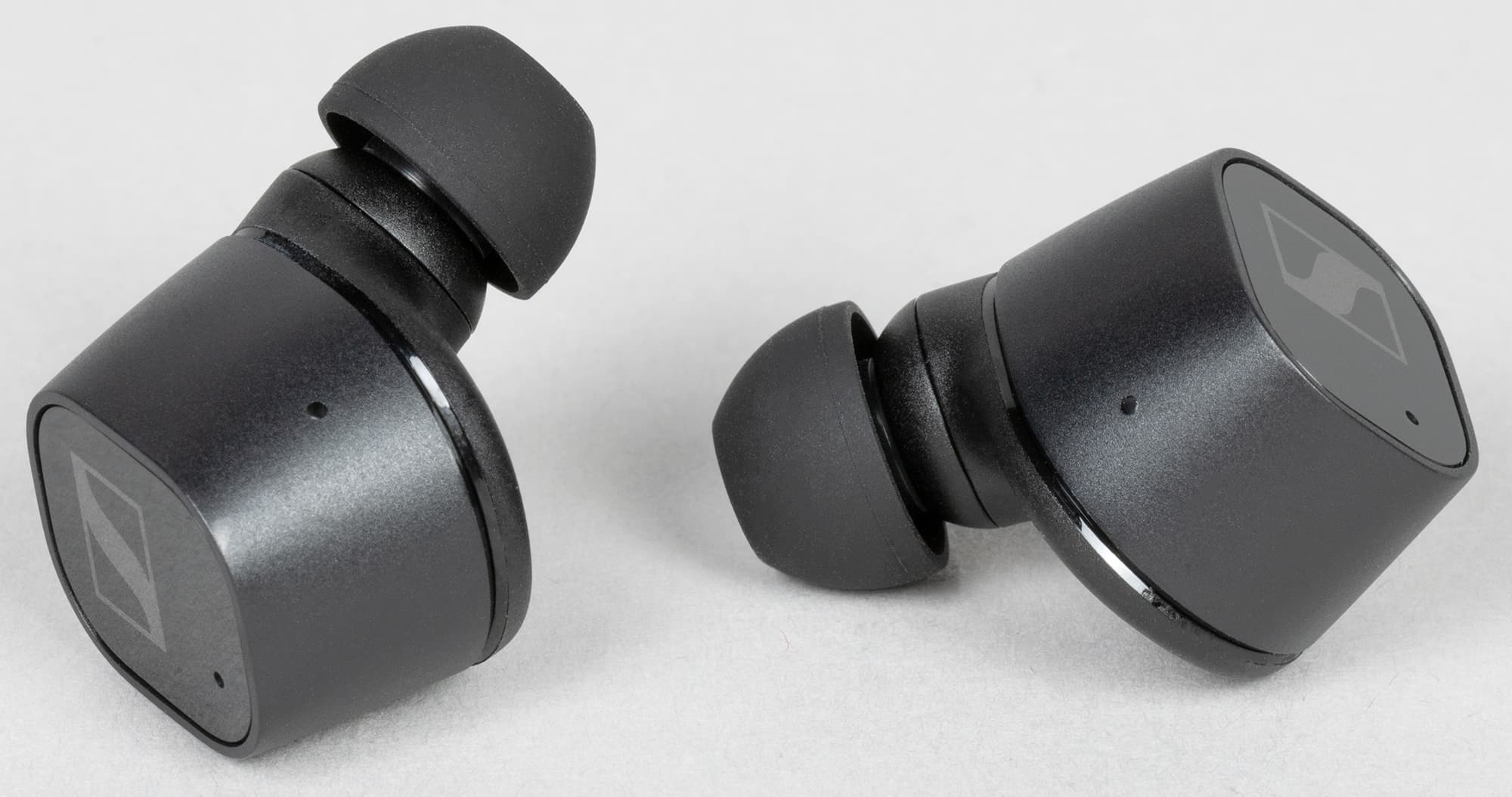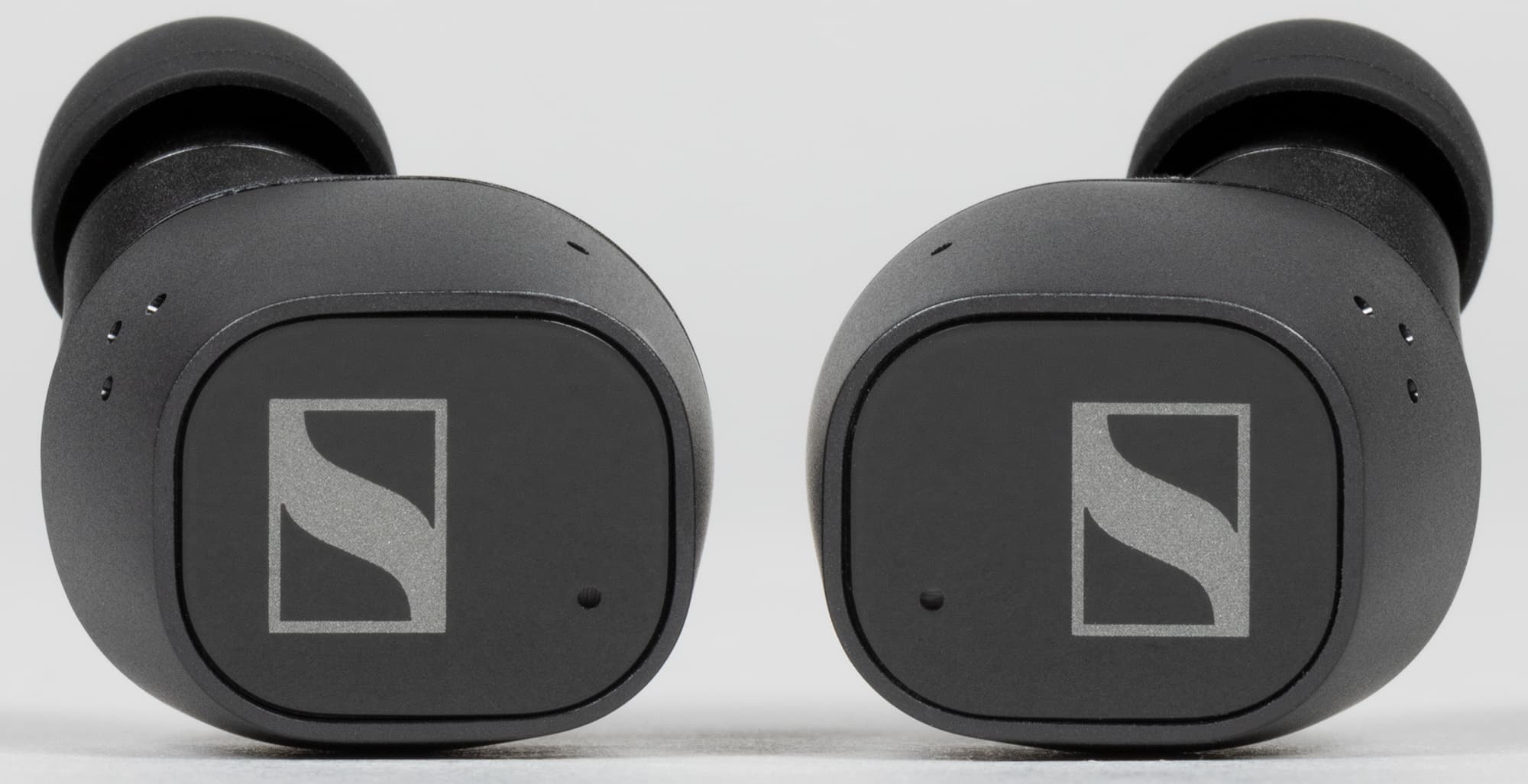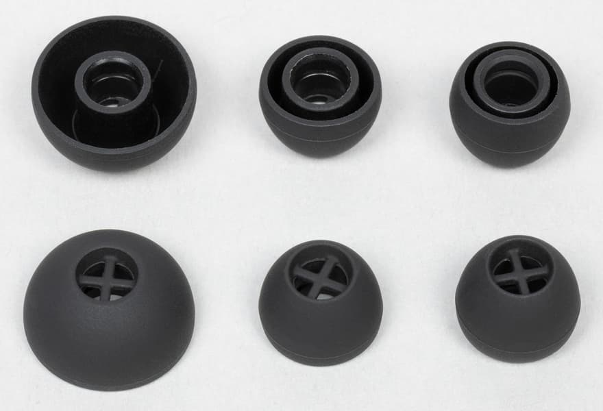 Амбушюры тоже выглядят вполне традиционно для Sennheiser — подобные мы видели у всех протестированных TWS-наушников бренда. Внутреннее отверстие насадок закрыто крестообразным элементом, предотвращающим слишком глубокую их посадку на звуковод и обеспечивающим первоначальную защиту от проникновения загрязнений.
