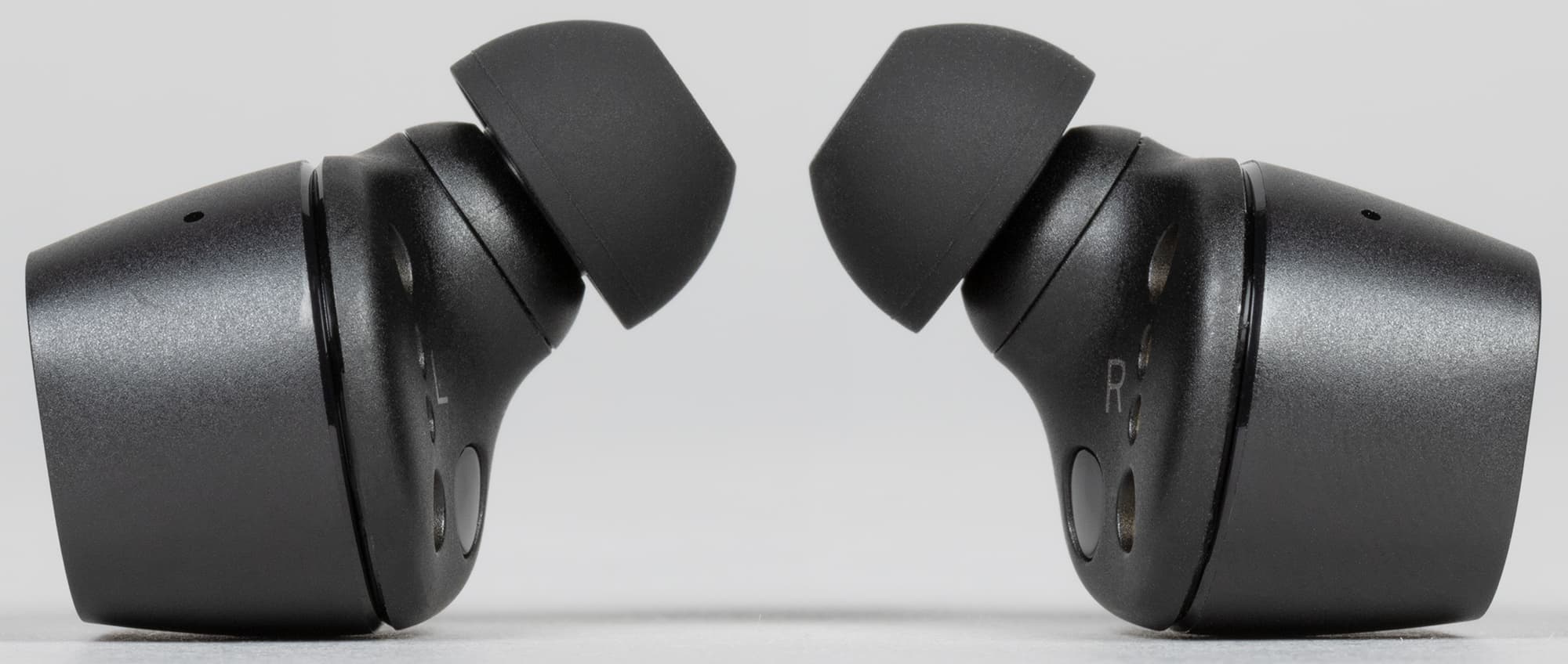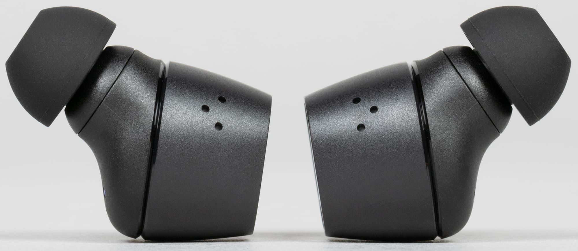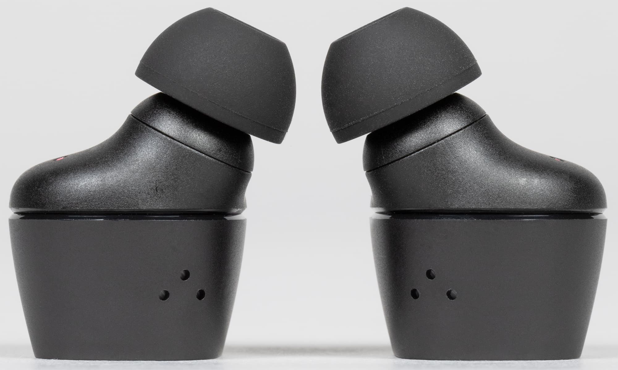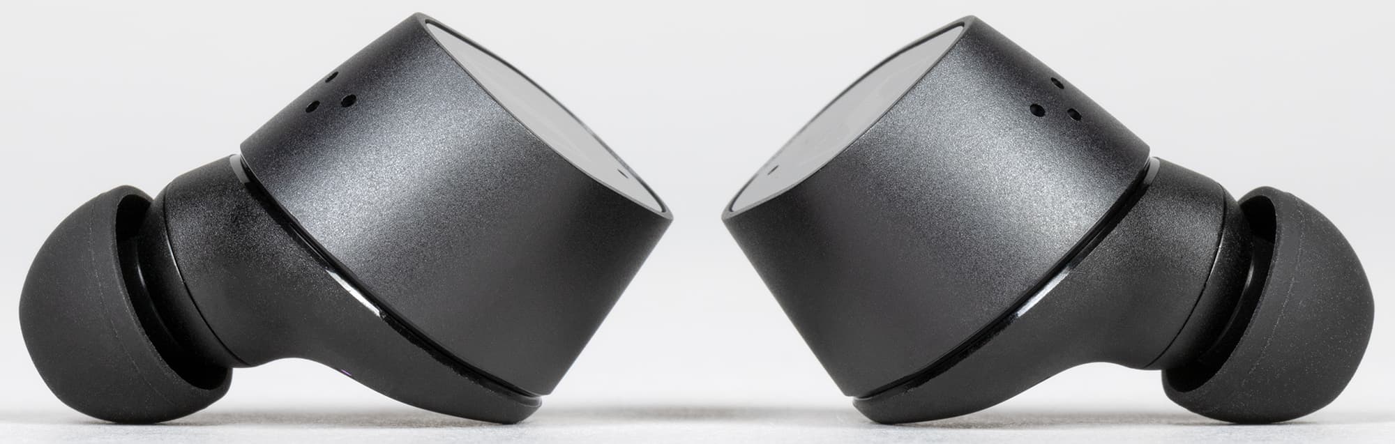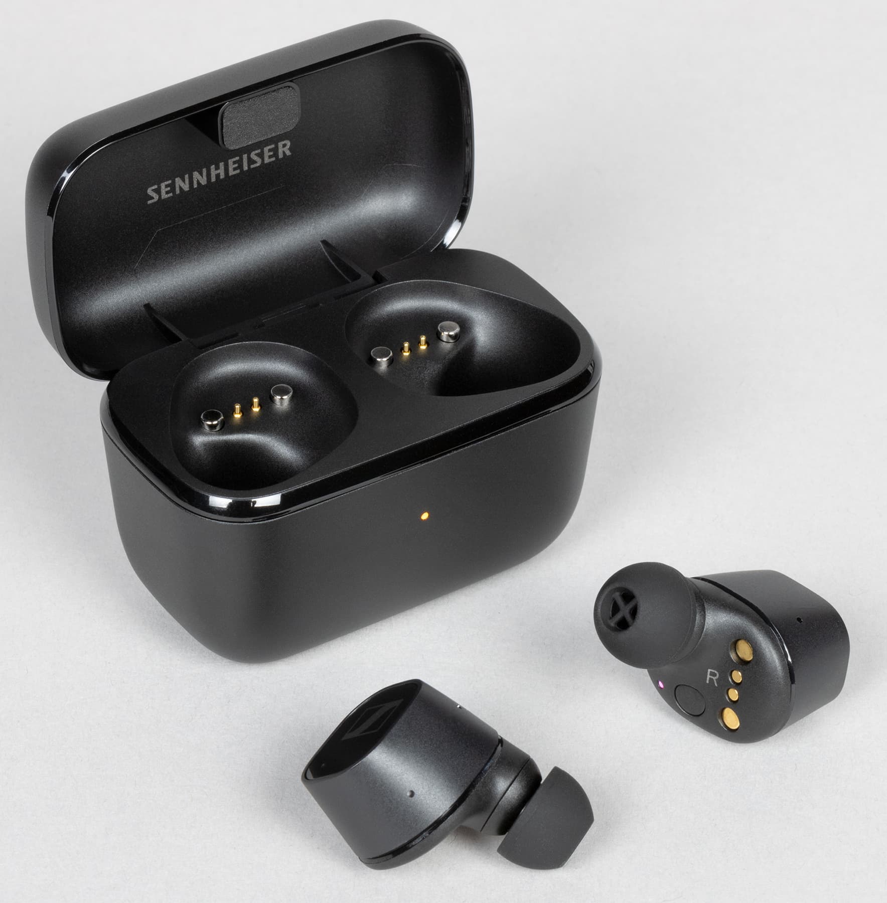 Амбушюры тоже выглядят вполне традиционно для Sennheiser — подобные мы видели у всех протестированных TWS-наушников бренда. Внутреннее отверстие насадок закрыто крестообразным элементом, предотвращающим слишком глубокую их посадку на звуковод и обеспечивающим первоначальную защиту от проникновения загрязнений.