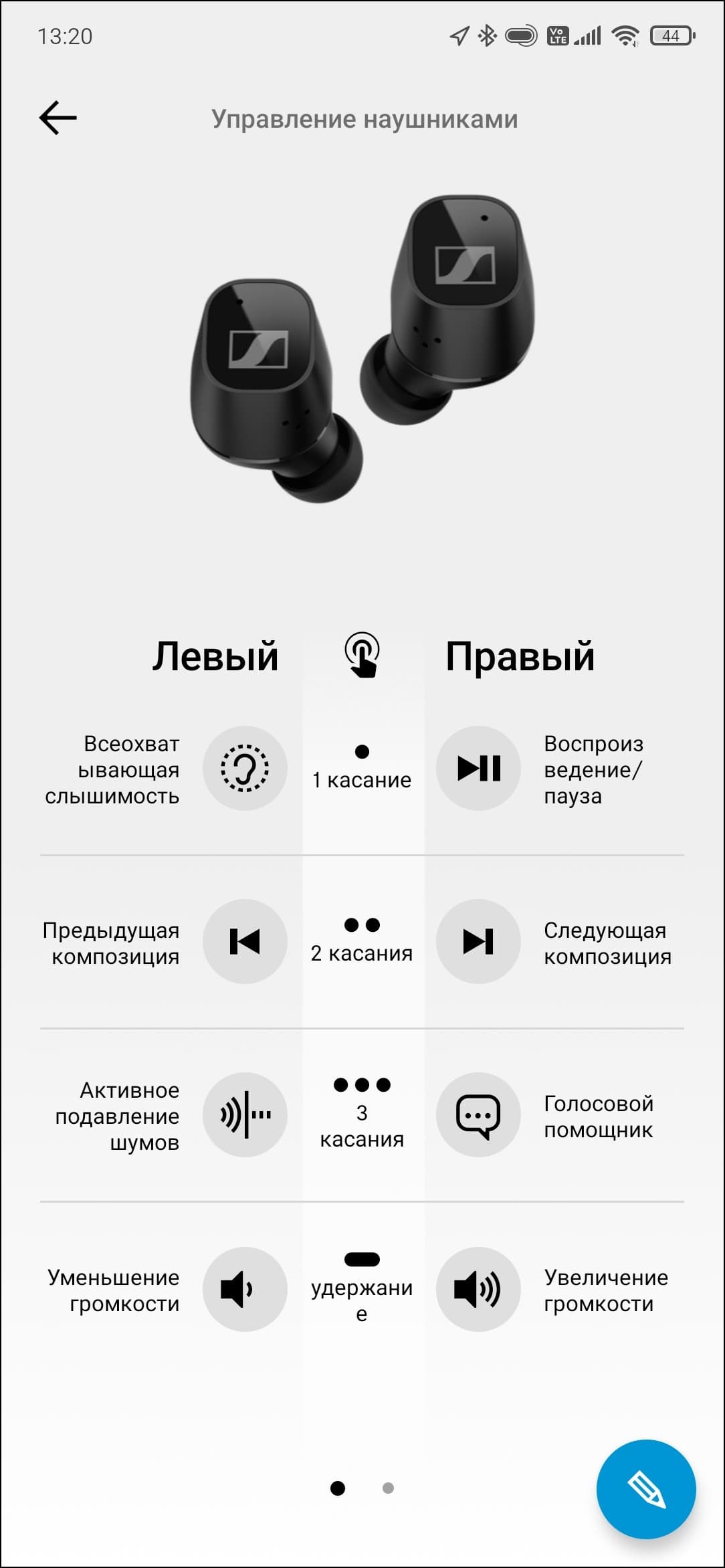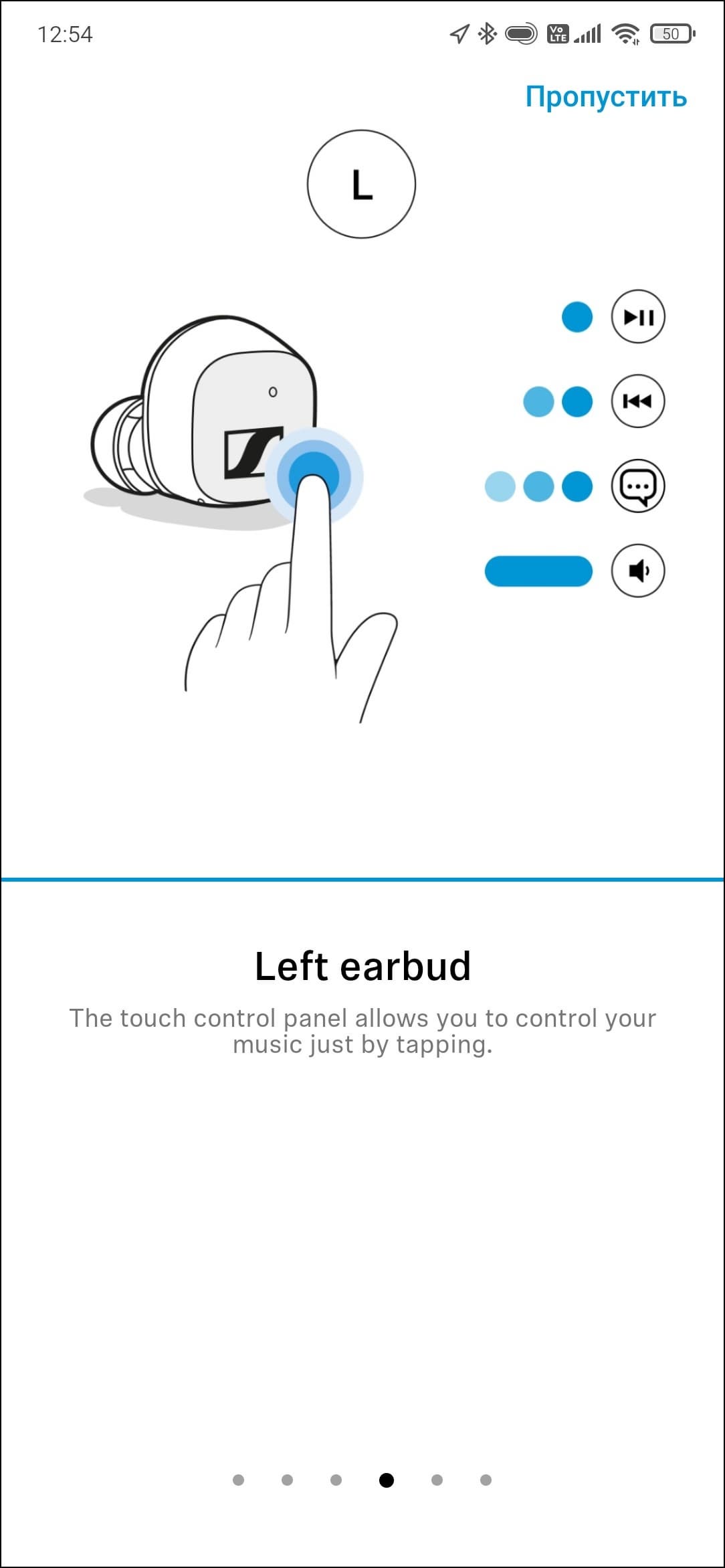 После того, как Sennheiser CX Plus True Wireless найдена и добавлена, ПО предлагает познакомиться с краткой инструкцией. Почему-то она отобразилась на английском языке — возможно, просто не успели еще перевести. В любом случае, разобраться там несложно — все просто и понятно.