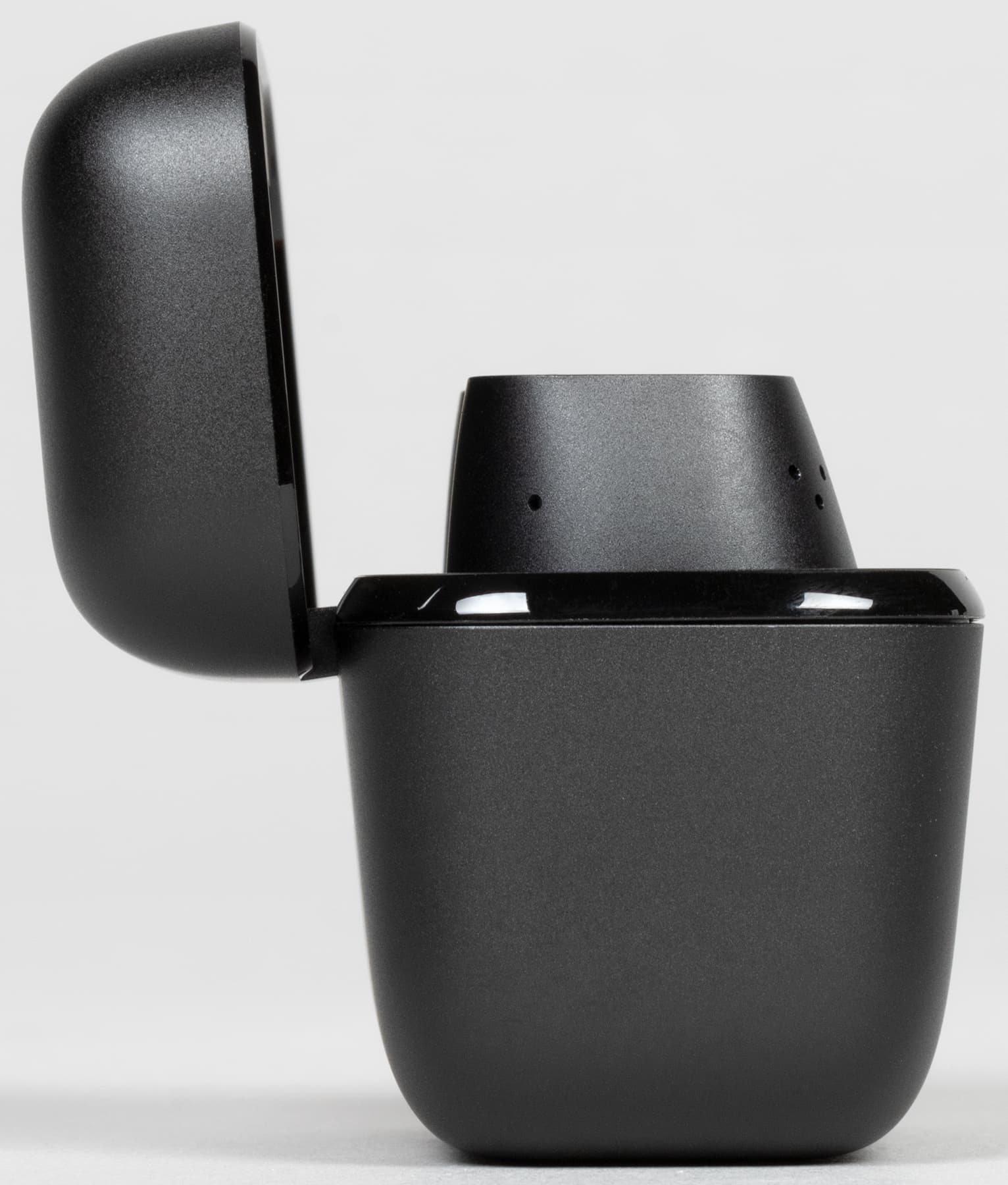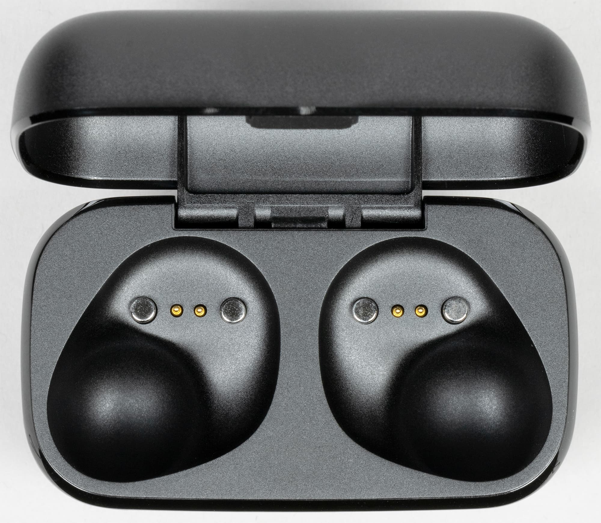 Наушники удерживаются на своих местах с помощью магнитов. Крепление плотное и надежное, если усердно потрясти кейс с наушниками внутри — можно услышать, как они чуть-чуть болтаются в своих слотах. Но это надо постараться, вряд ли кто-то будет делать это при повседневном использовании гарнитуры.