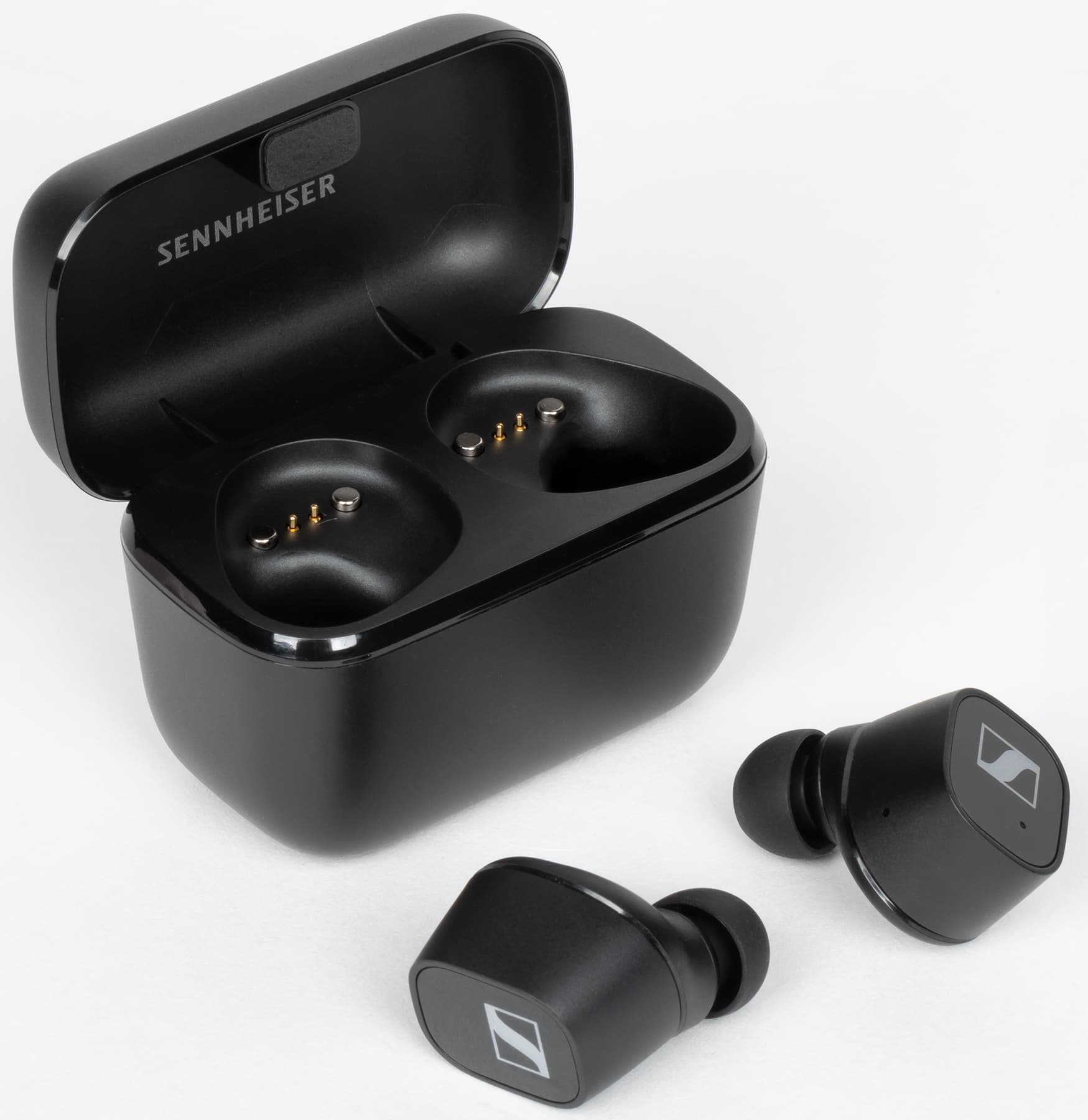 Sennheiser CX Plus True Wireless поставляется в двух цветовых вариантах — черном и белом. У нас на тестировании был первый. По дизайну они почти не отличаются от СХ 400BT, «наследниками» которых и являются.