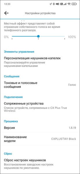 Настройка гарнитуры осуществляется с помощью приложения Smart Control, о котором мы неоднократно говорили в тестированиях чуть ли не всех наушников Sennheiser. При первом включении CX Plus сами активируют режим сопряжения, в дальнейшем его можно запустить, удерживая обе сенсорные панели в течение нескольких секунд. Подключение гарнитуры нужно предварительно осуществить «классическим» способом — через меню используемого гаджета, а уже потом добавлять ее в приложение.