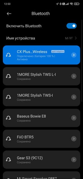 Если источник его поддерживает, по умолчанию используется aptX Low Latency, всего же поддерживаемых кодека четыре: SBC, AAC, aptX, aptX Adaptive. Проверили мы это традиционно с помощью утилиты Bluetooth Tweaker. А заодно убедились, что наушники корректно работают с ПК под управлением Windows 10. Полноценного мультипойнта у CX Plus True Wireless нет, как и у предшественниц, зато есть возможность запомнить до 8 устройств-источников и переключаться между ними в приложении.