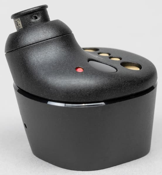На передней панели размещен светодиодный индикатор, показывающий уровень зарядки встроенного аккумулятора. Во время зарядки он горит желтым, пока аккумулятор заряжен — зеленым, когда садится — красным.