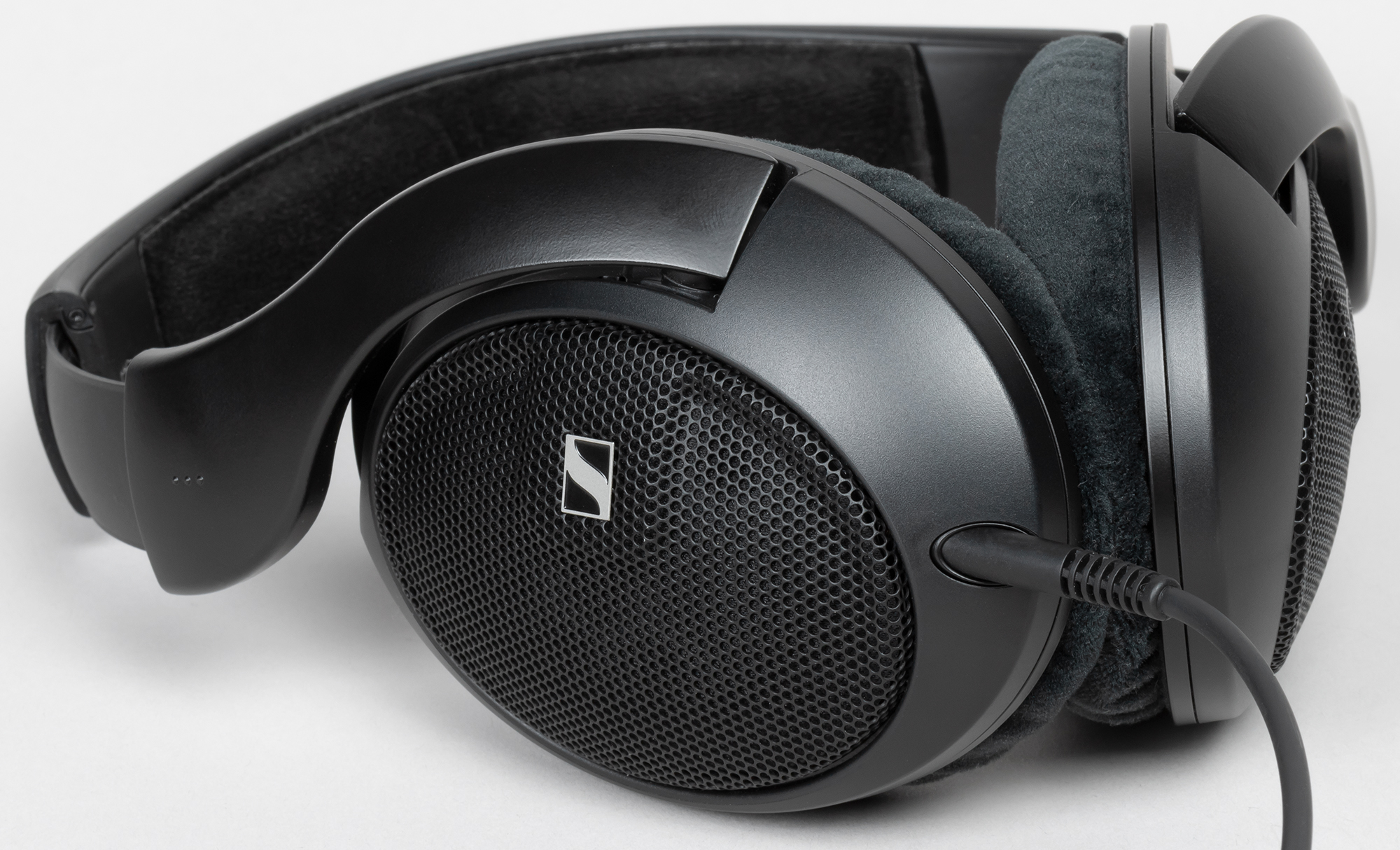 Масса наушников при этом — всего лишь 240 г, на голове они почти не ощущаются. Если по звуку HD 560S ближе к известной модели HD 660S, то по особенностям исполнения корпуса — к ультралегким HD 599. После пары часов непрерывного использования появляются первые признаки дискомфорта, но избавиться от них можно просто чуть-чуть увеличив размер дуги, ослабив таким образом давление на голову. Хотя оно и так не слишком велико, что особенно порадует носящих очки слушателей.