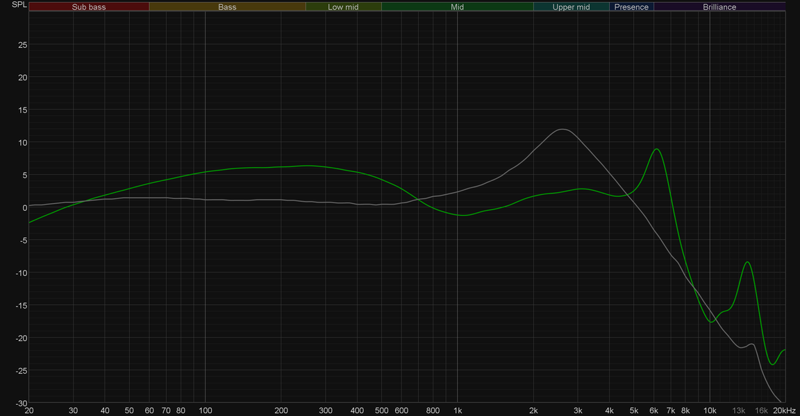 Серым цветом на графике выше показана целевая АЧХ для внутриканальных наушников, созданная командой Harman International под руководством доктора Шона Олива. Люди неодинаково воспринимают звук разной частоты, поэтому даже самые точные измерения могут не соответствовать реальному пользовательскому опыту. Для компенсации этих различий и используется целевая АЧХ Harman. Близкое к ней звучание оценивалось сотнями участников экспериментов как нейтральное, сбалансированное, естественное и так далее.