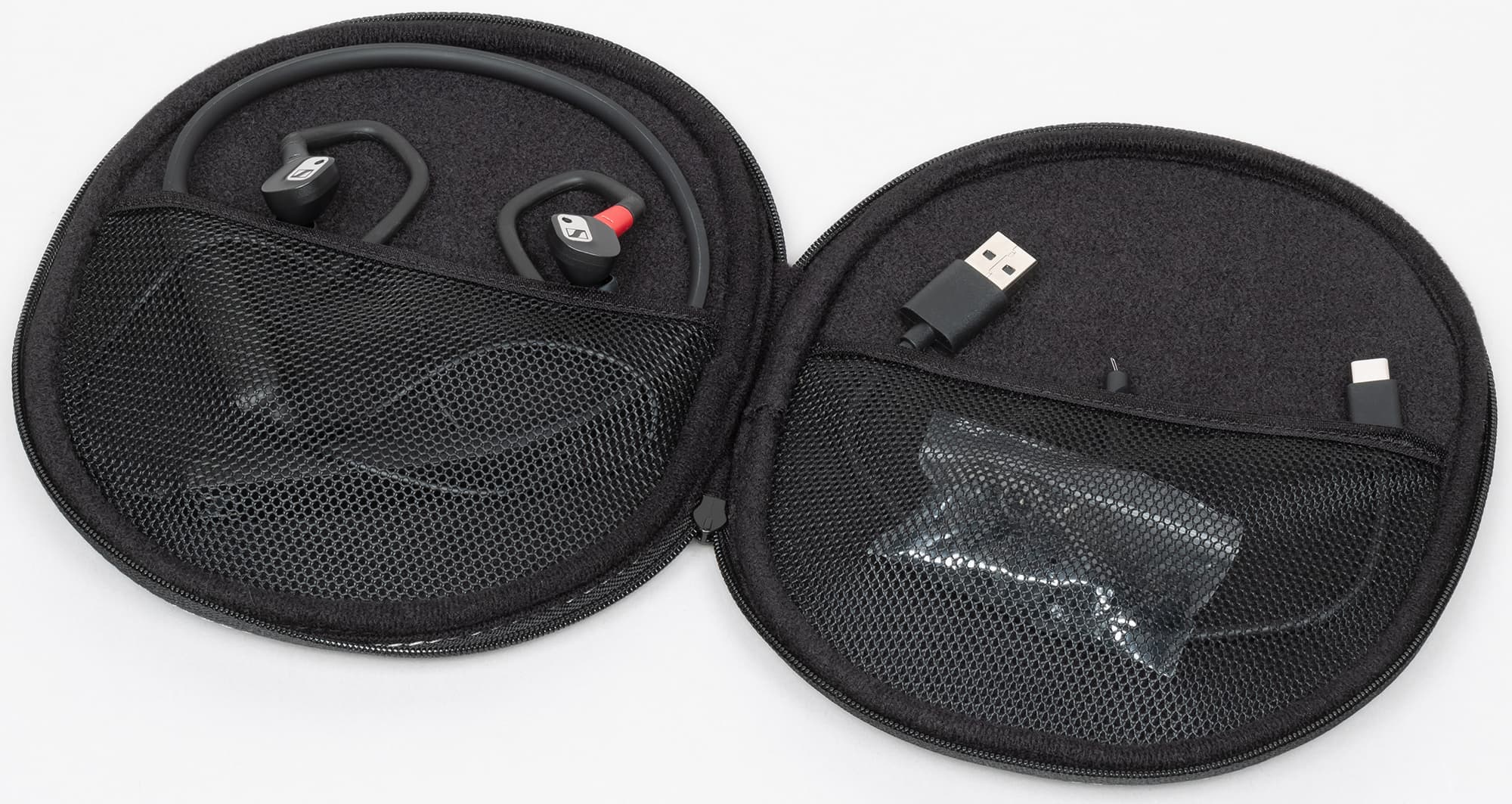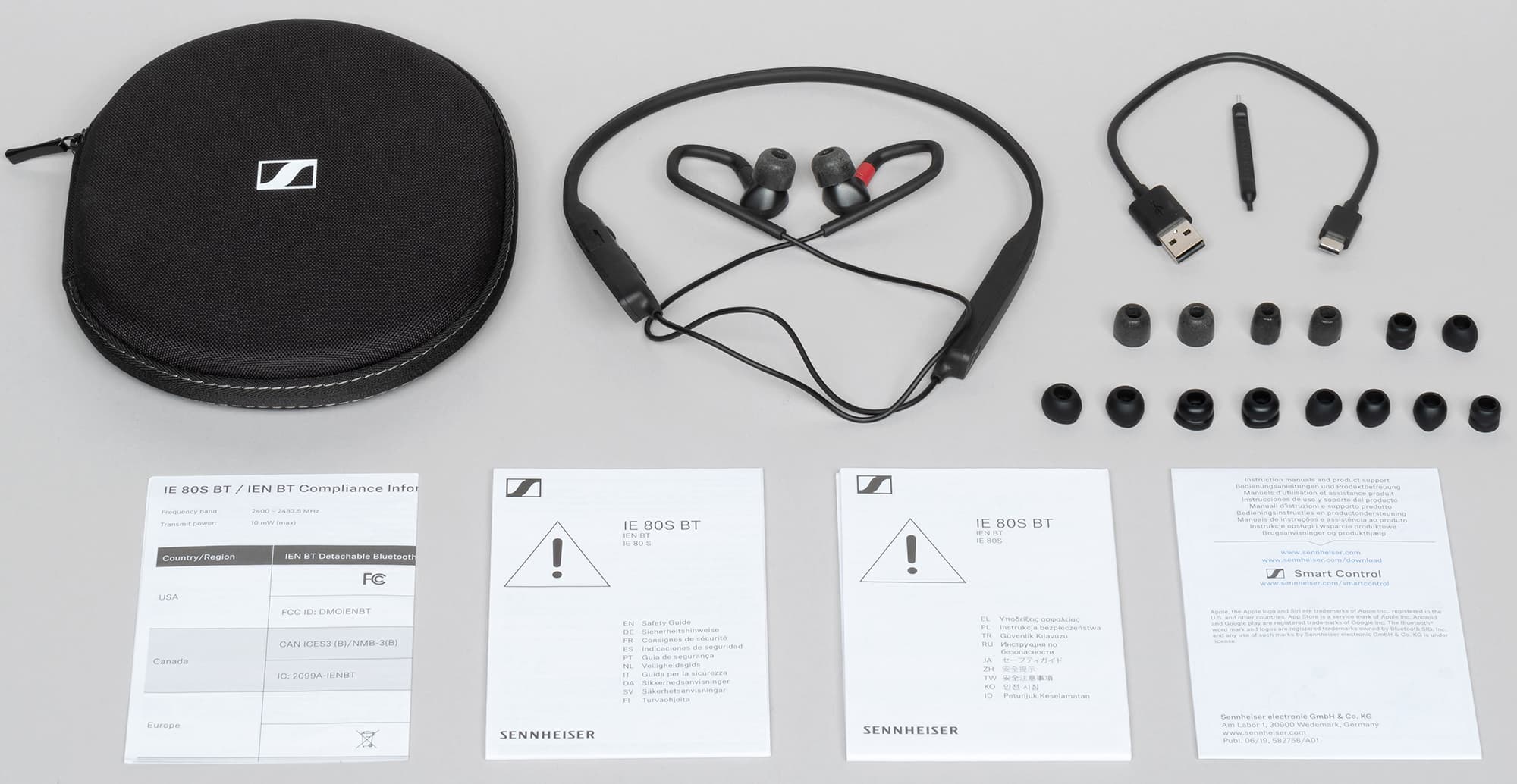 В комплект входят сами наушники, кейс для их хранения и транспортировки, кабель USB—USB-C длиной 24 см, инструмент для настройки и очистки наушников, набор сменных амбушюров и документация.