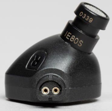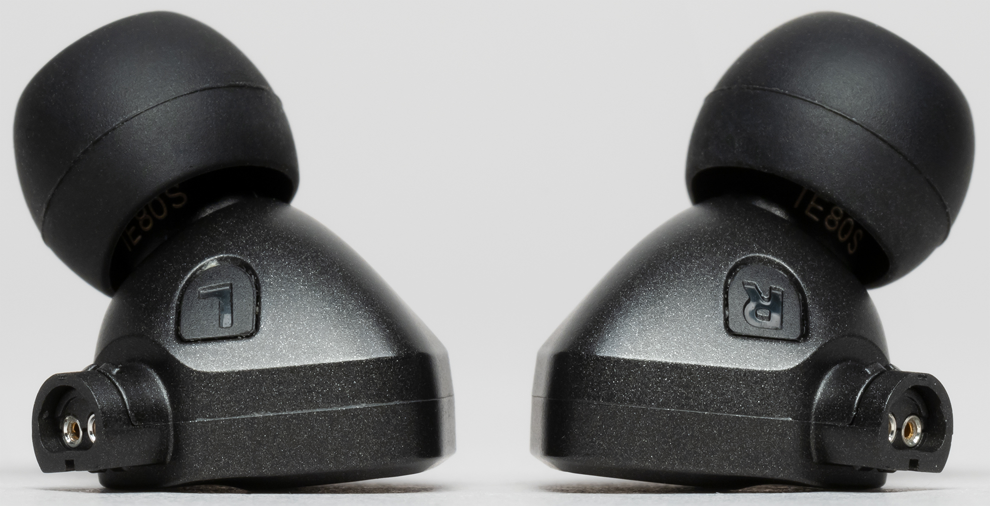 При ближайшем рассмотрении видна маркировка на звуководе, еще раз подтверждающая, что мы имеем дело с моделью IE80S. Возле регулятора низких частот расположены пять отметок, но изменение уровня осуществляется плавно — без кликов.