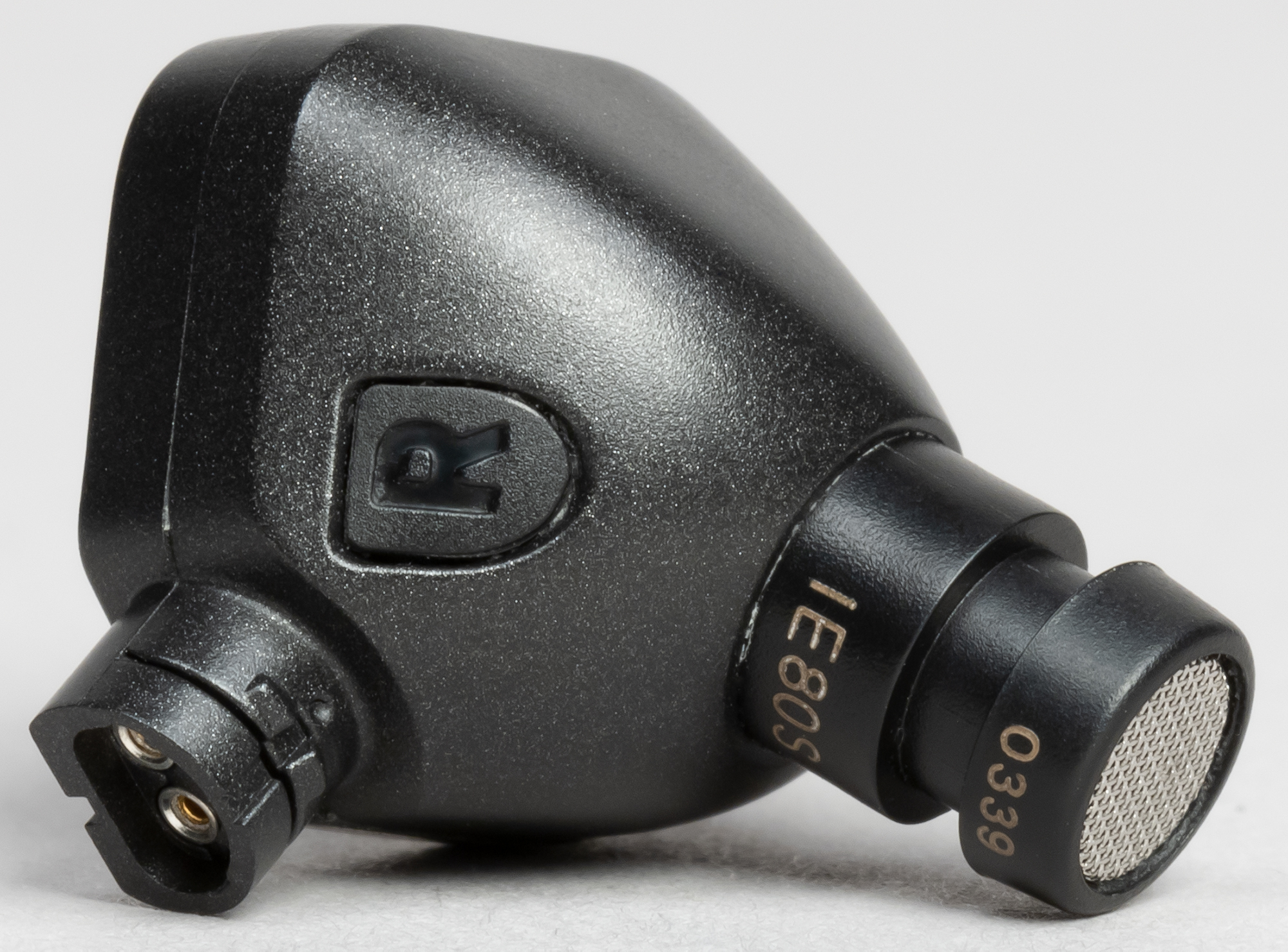 Длина звуковода довольно велика — 7 мм, с удлиненными амбушюрами это позволяет добиться глубокого проникновения в ушной проход, если в этом есть необходимость. Отверстие звуковода защищено металлической сеткой, за ней скрывается динамический излучатель диаметром 10 мм. На внутреннюю часть корпуса нанесена не очень заметная маркировка «правый»/«левый». К счастью, пользоваться ею нужно только при подключении наушников, далее же можно ориентироваться на уже упомянутую выше метку на кабеле.