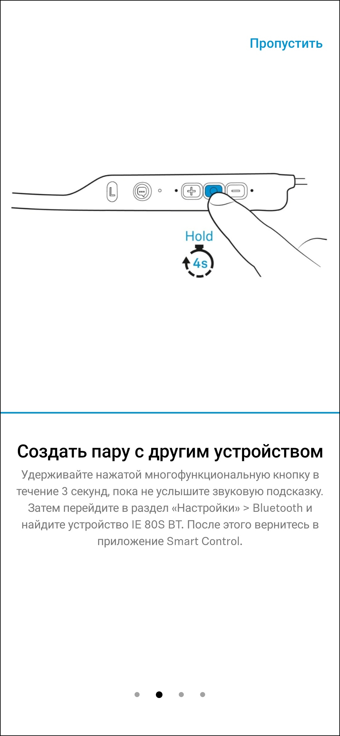Активация режима сопряжения у IE 80S BT производится длительным нажатием на многофункциональную клавишу. Для настройки и управления используется приложение Smart Control, знакомое нам еще по тестированию первой версии Sennheiser Momentum True Wireless. После установки программа предлагает соединить гарнитуру с используемым устройством через его меню настроек, а потом вернуться — так и поступим. Отказаться от использования фирменного ПО можно, не делать этого не стоит — в нем есть пара интересных и полезных функций, о которых мы еще поговорим.