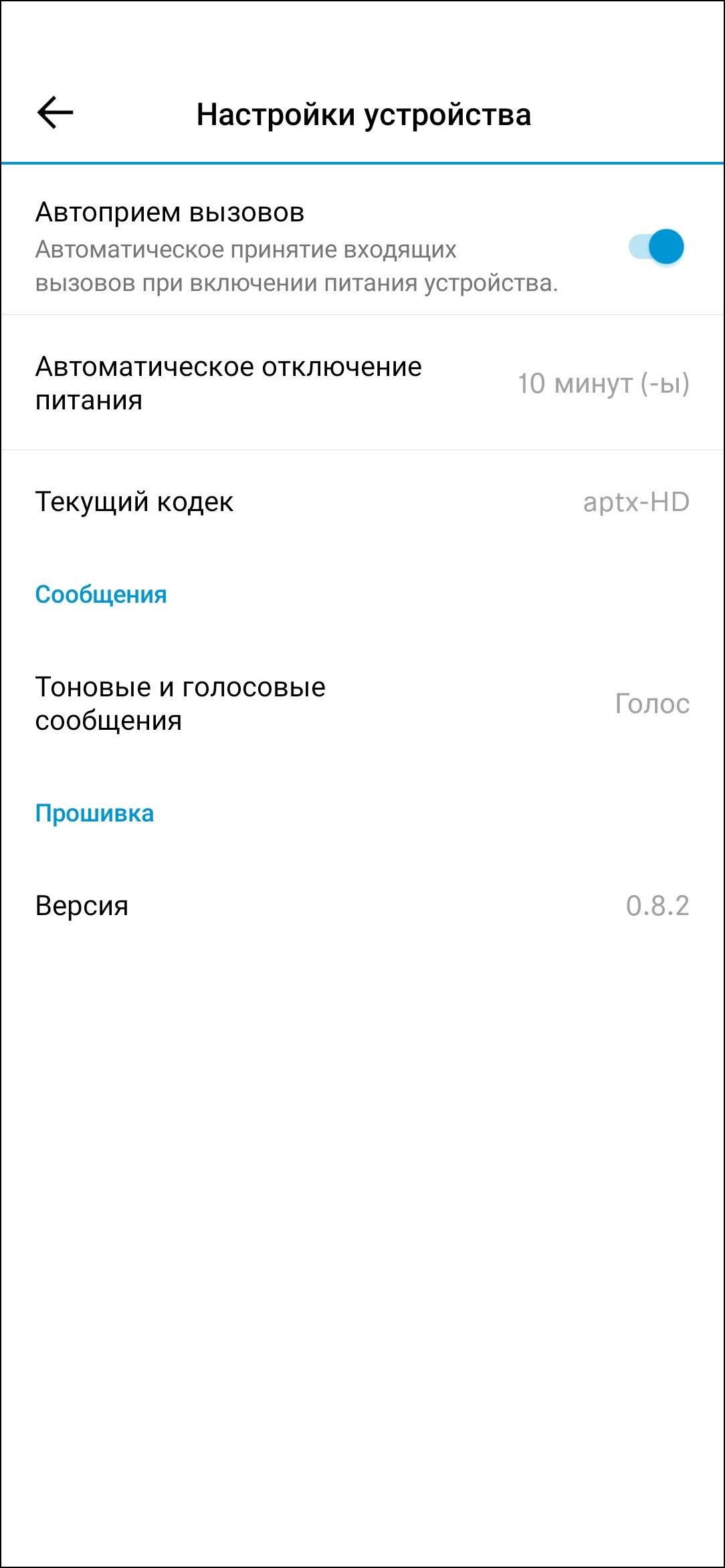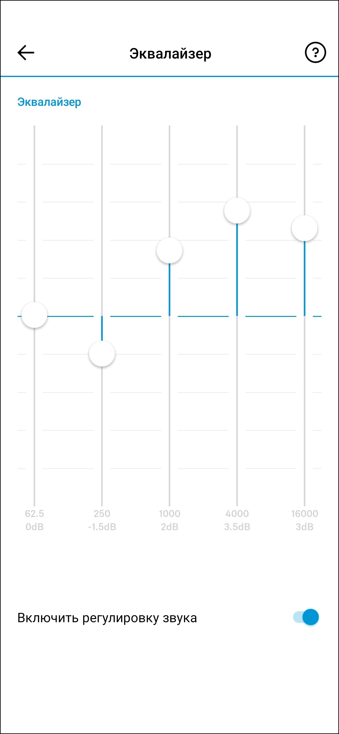 Smart Control App позволяет увидеть уровень заряда устройства и используемый кодек. На отдельной вкладке можно выбрать тип оповещения — с помощью тоновых сигналов или голосовых сообщений на английском, немецком, китайском, японском или корейском языках. Также в настройках можно включить автоматический прием вызовов, настроить паузу перед отключением питания в случае бездействия. В отличие от гарнитур серии Momentum, у «аудиофильского» решения используется 5-полосный эквалайзер, вместо упрощенного варианта, управляемого перемещением одной точки по экрану.