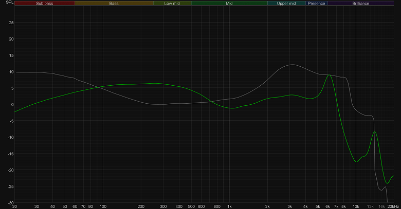 А заодно — скомпенсируем полученную нами при измерениях кривую АЧХ в соответствии с целевой, создав тем самым «звуковой профиль» тестируемых наушников, приближенный к восприятию их слушателем. Если иллюстрации такого рода будут интересны читателям, они будут появляться и в будущих обзорах наушников.