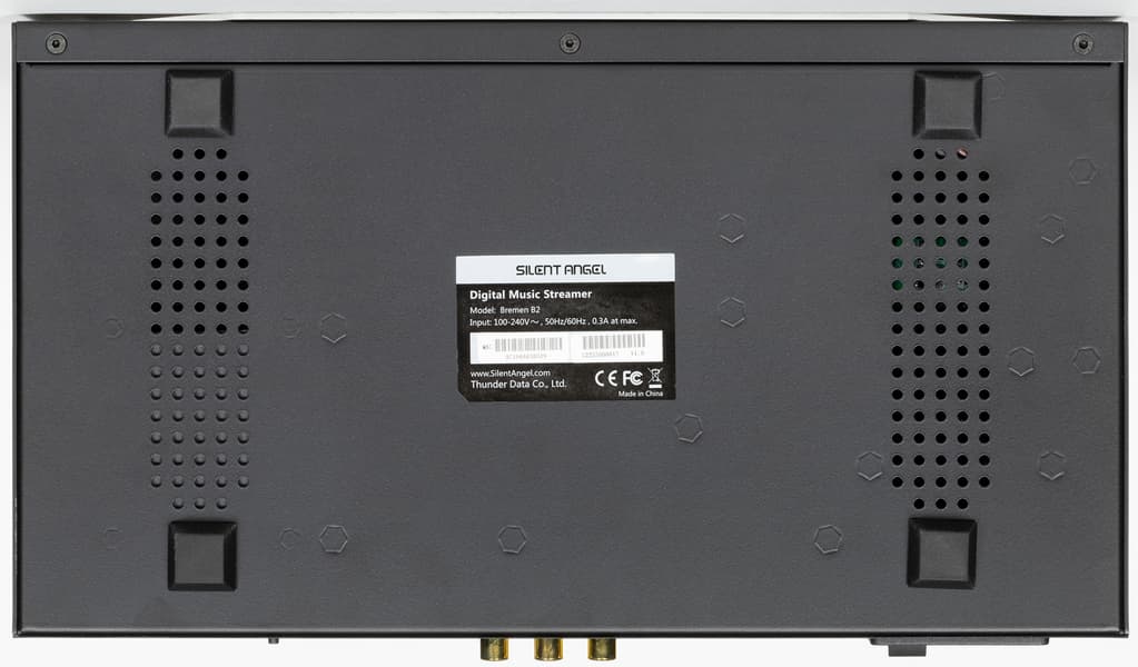 Далее у нас идет аналоговый выход RCA, на который и стоит в основном ориентироваться, подключая плеер к активной акустике или усилителю. Ну, либо наушникам через разъем на передней панели. Наличие неплохого встроенного ЦАПа — одна из главных особенностей Silent Angel Bremen B2, для цифрового подключения можно подобрать что-то без него и, соответственно, подешевле. При этом если возникнет желание апгрейда — есть возможность приобрести внешний ЦАП и добавить его в сетап, не меняя плеер.