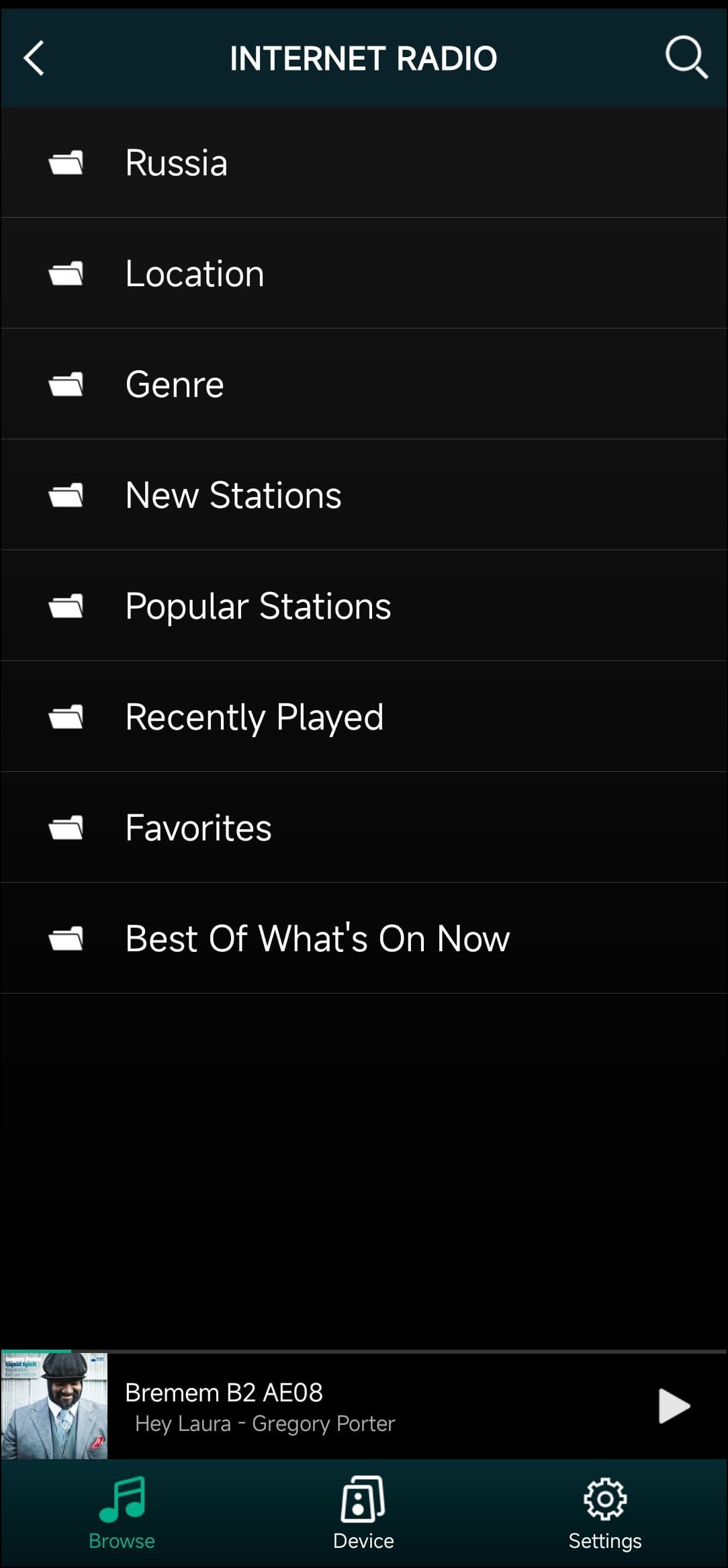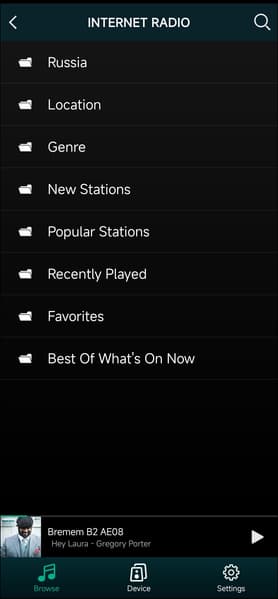 Список предустановленных интернет-радиостанций огромен. Они скомпонованы по странам и жанрам, всегда можно выбрать подходящую под момент и настроение.
