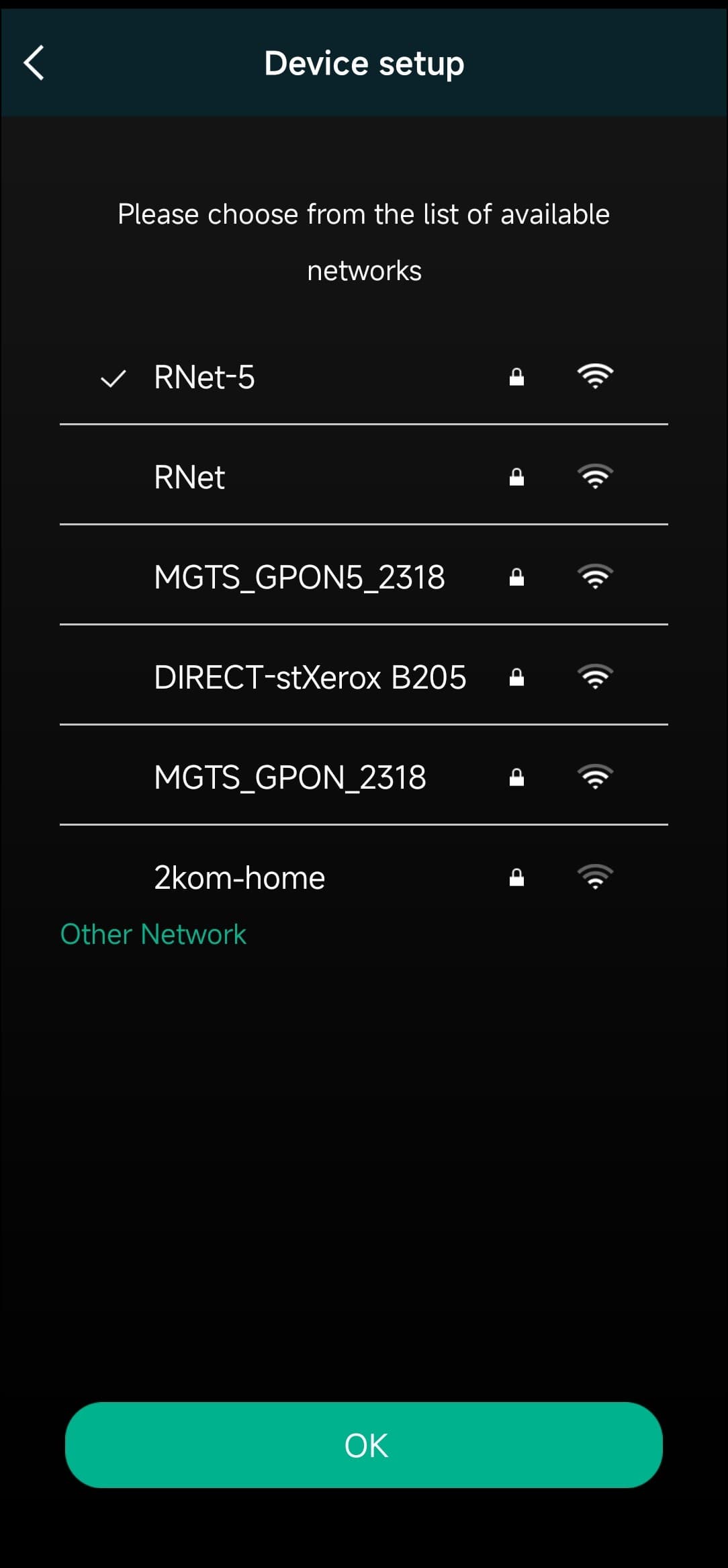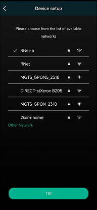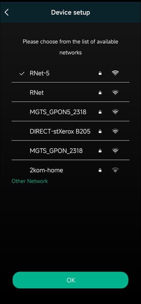 Подключаемся к беспроводной сети. По умолчанию приложение предлагает использовать сеть Wi-Fi 5, к которой подключен смартфон. Понимаем, что вряд ли этот номер у нас пройдет — этот тип сетей плеер не поддерживает. Но раз предлагают — надо попробовать.