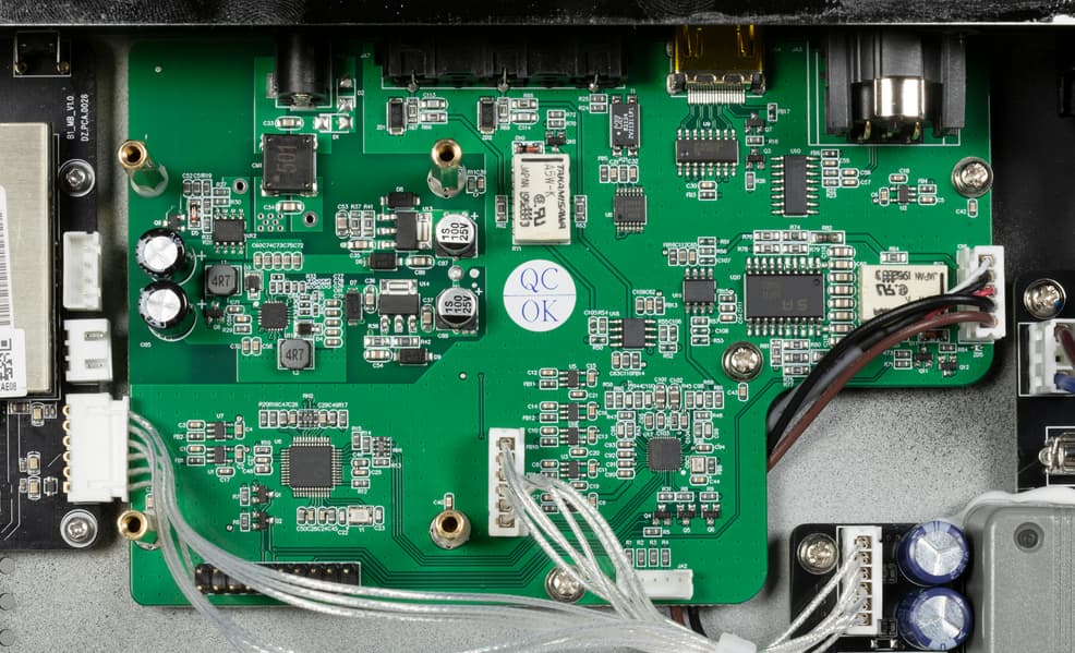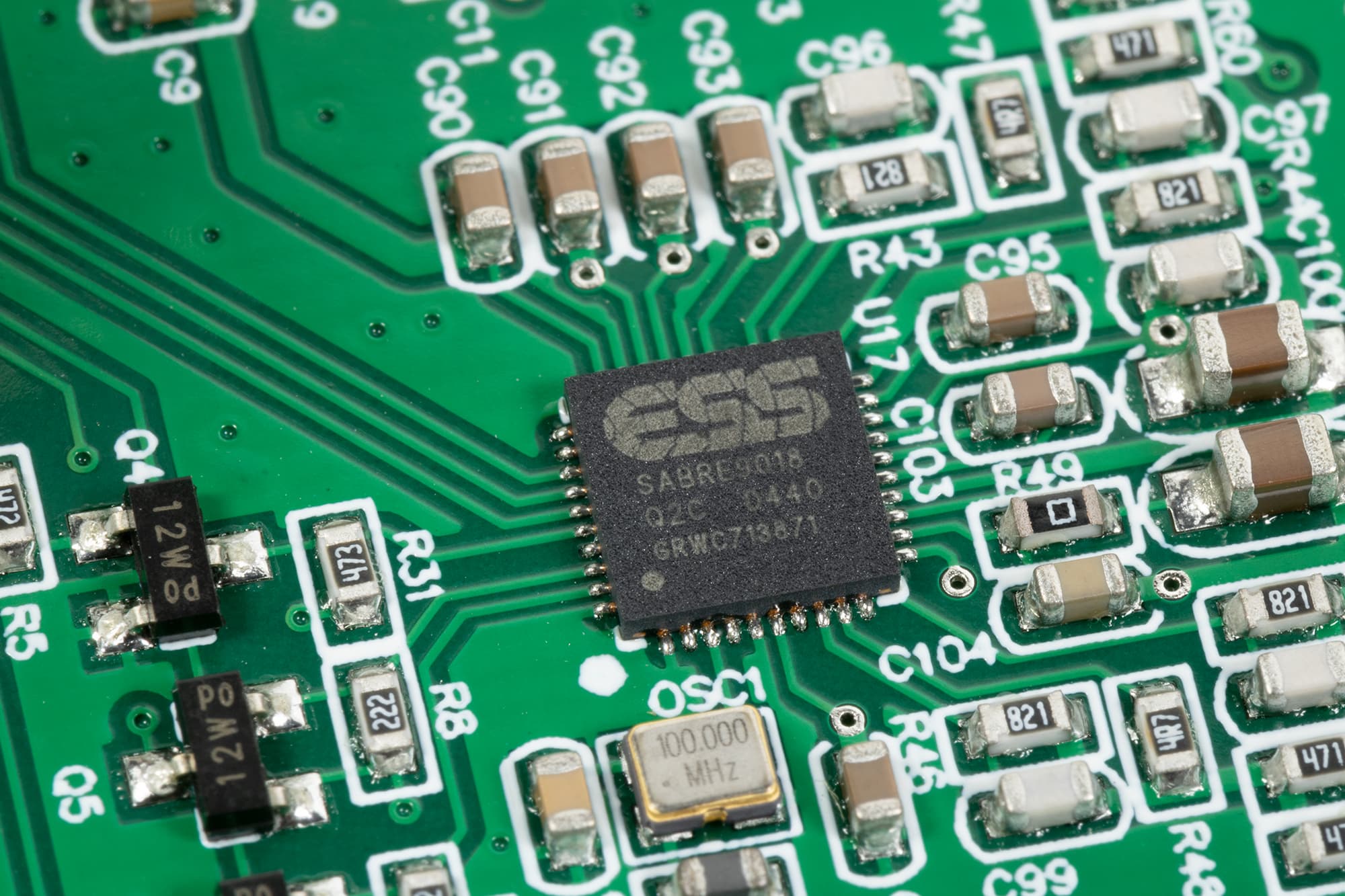 Почти по центру мы видим хорошо зарекомендовавший себя ЦАП ESS Sabre 9018 — в свое время он считался флагманским, а теперь с почетом перешел в разряд «проверено временем».