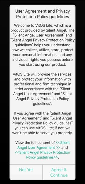 С подключением разобрались — переходим к настройке. Для этого скачиваем приложение VitOS Lite, доступное для смартфонов и планшетов под управлением Android и iOS. Оно доступно в соответствующих магазинах, также в инструкции есть ссылка на файл .apk для андроид-устройств, вот ей-то мы и воспользовались. Устанавливаем, даем все необходимые разрешения. Как только это сделано, ПО начинает поиск доступных устройств. Проверяем, что индикатор на лицевой панели мигает зеленым, если нет — сбрасываем настройки с помощью кнопки сзади.