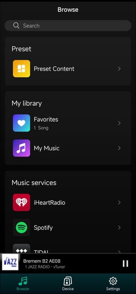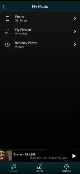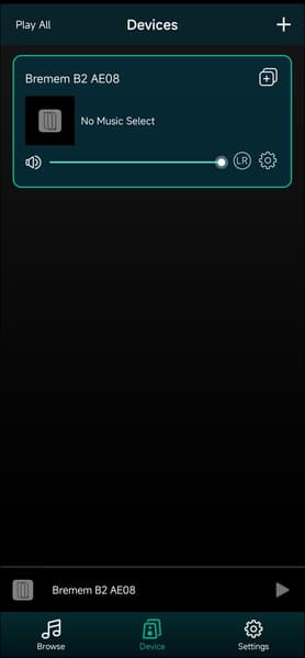 Если устройств больше одного, все можно увидеть в соответствующей вкладке приложения. При этом расположенные там виджеты позволяют изменять громкость, что удобно. Далее переходим на вкладку браузера, нажимаем на кнопку «My music» и получаем возможность воспроизводить находящиеся в памяти телефона файлы.