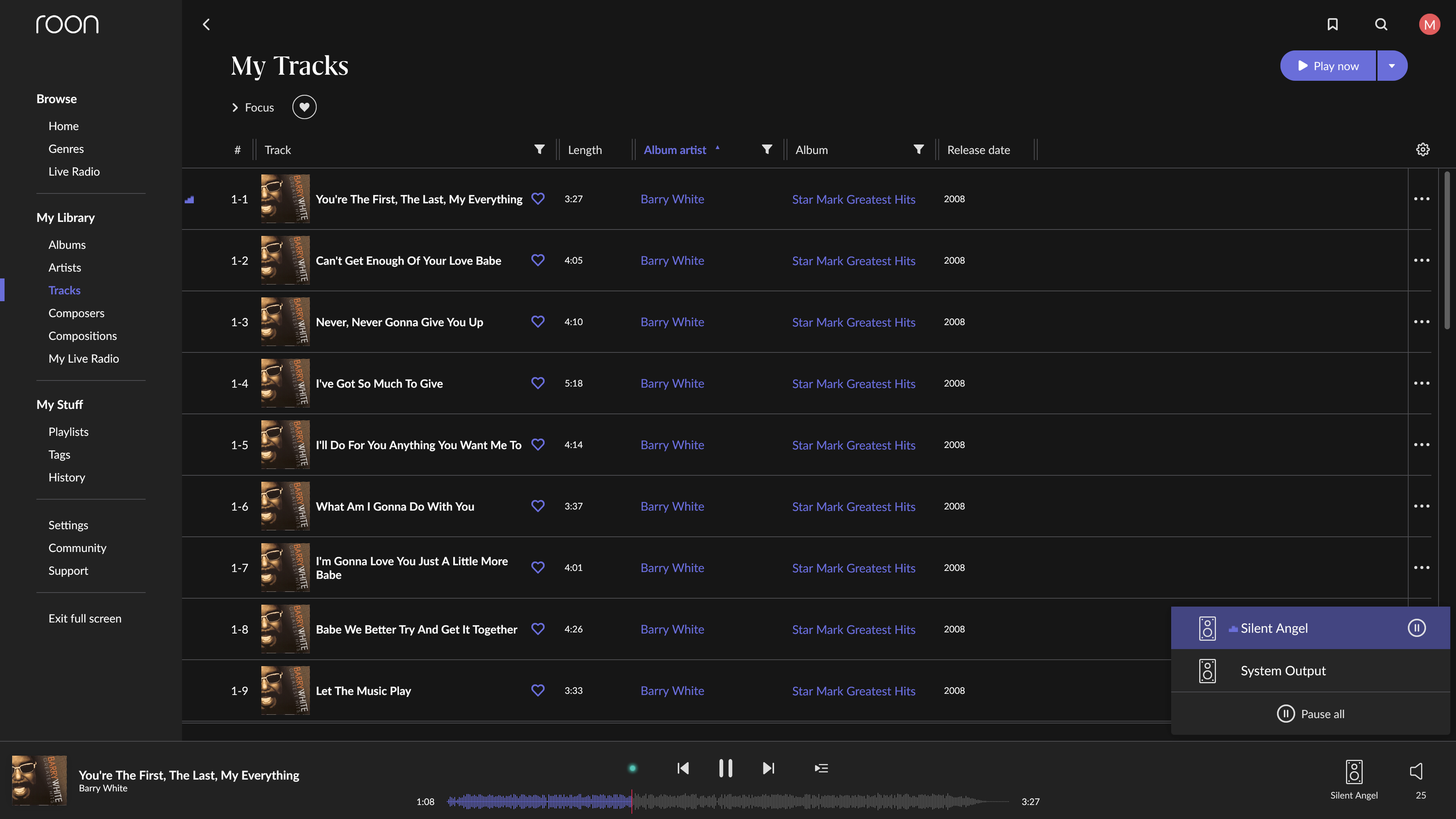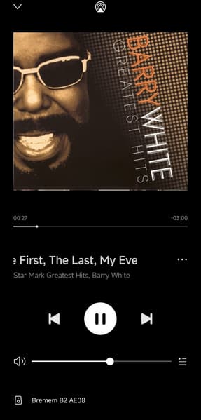 Выбираем его в качестве выхода — и все, слушаем наш плеер. Название трека и обложка видны в установленном приложении, оттуда же можно при желании управлять воспроизведением.