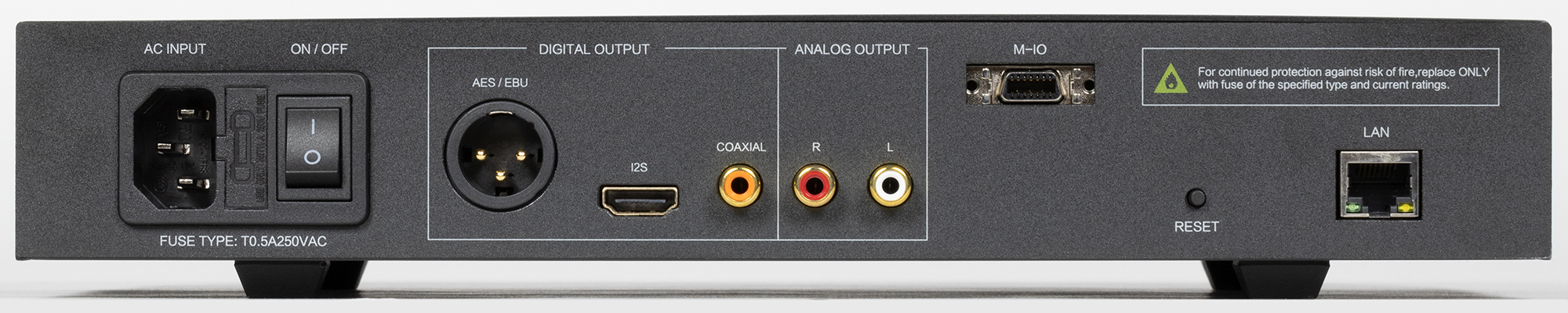 | Разъемы | AES/EBU (XLR) I2S (HDMI) Coxial S/PDIF (RCA) |