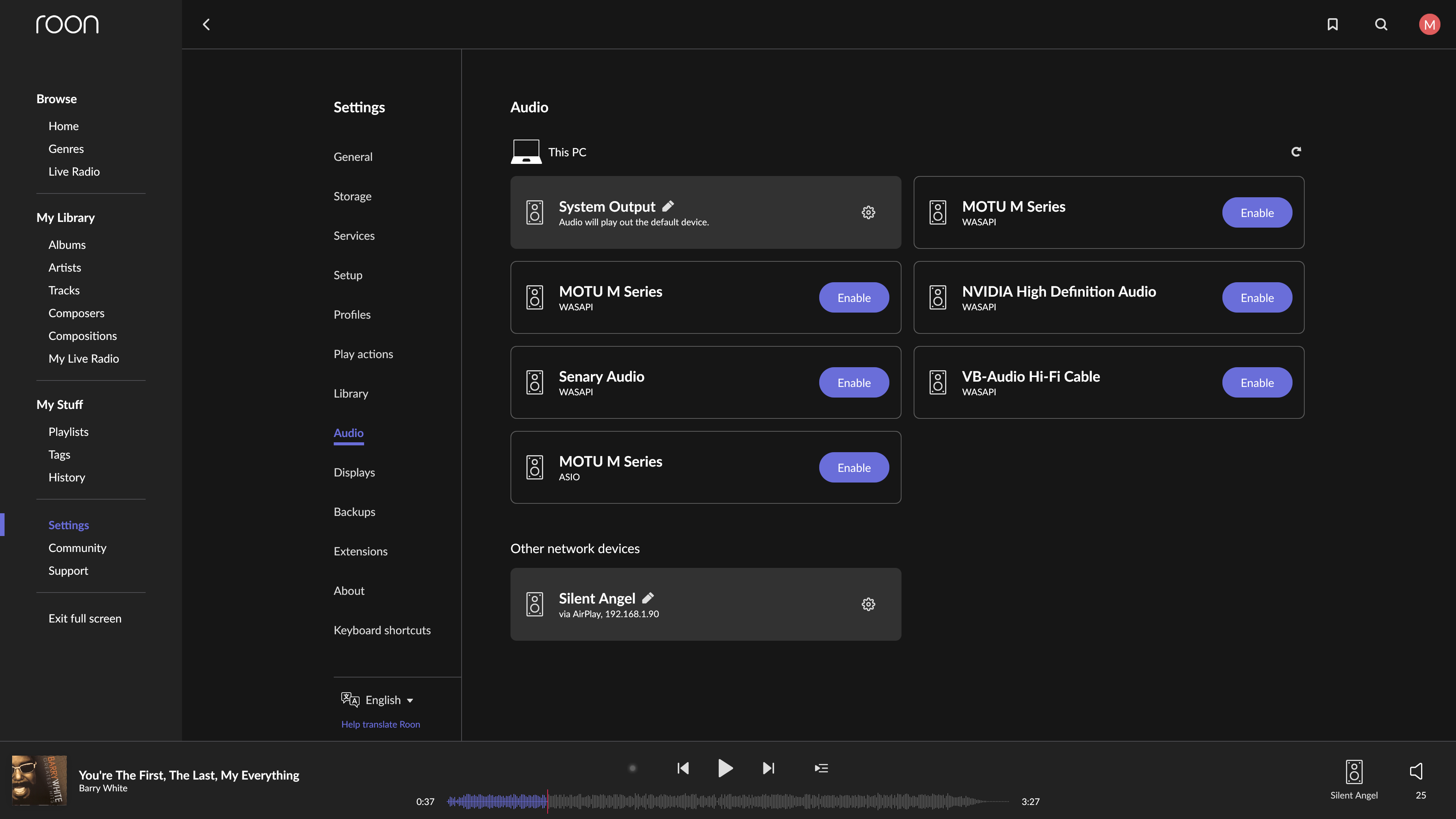 Раз уж у нас в сети новое устройство, сразу проверим — будет ли оно доступно в Roon. Да, все сразу работает без каких-либо дополнительных действий. Добавляем сетевое устройство в соответствующей вкладке настроек. Видим, что используется AirPlay, что накладывает ряд ограничений — любители «хайрезов» явно будут недовольны.