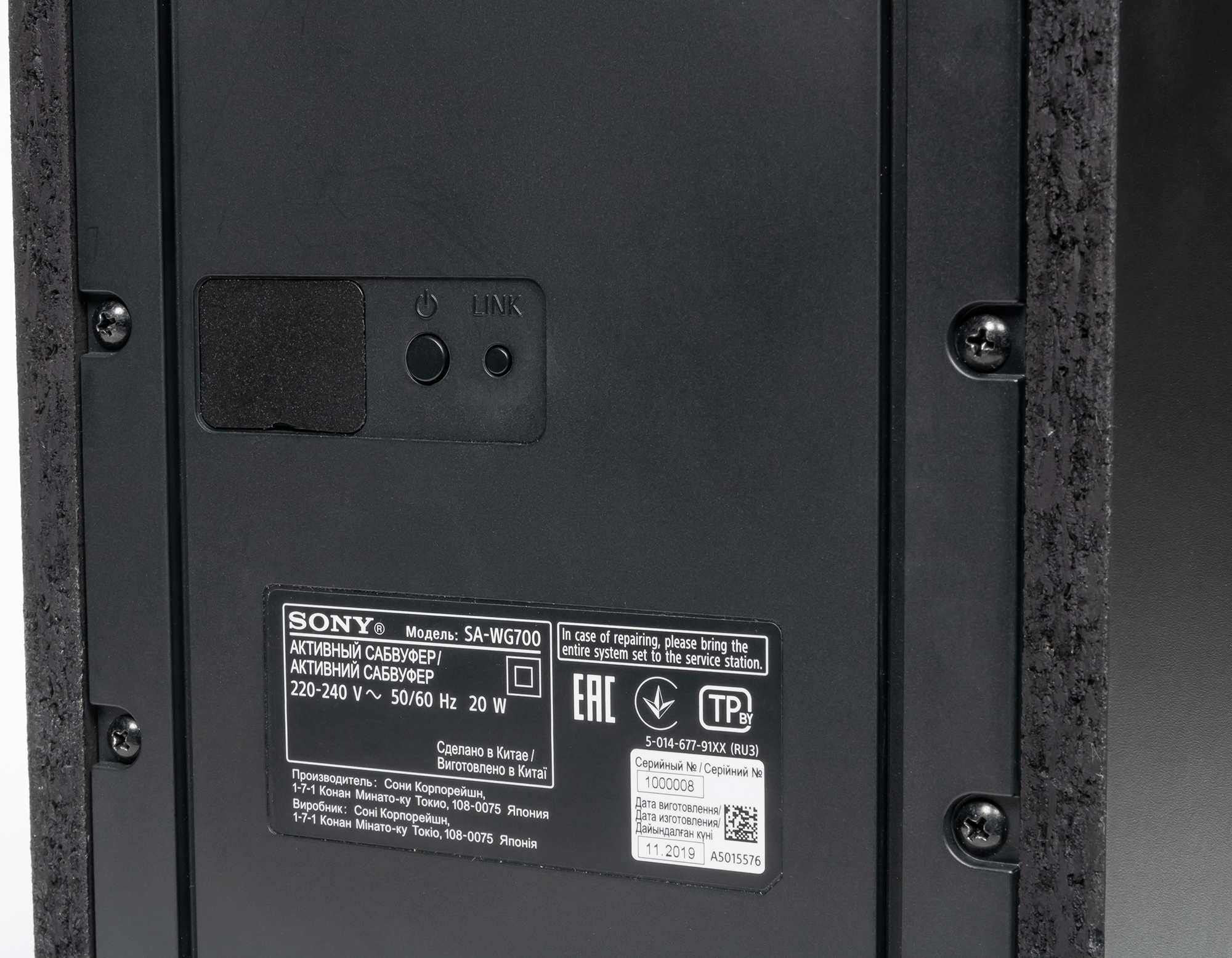 Саундбар Sony HT-G700 можно размещать на горизонтальной поверхности, либо подвешивать на стену. Сабвуфер, как уже отмечалось выше, есть возможность располагать чуть ли не вплотную к стенам или мебели, что удобно. Устройства поддерживают беспроводное соединение, но каждому потребуется питание от сети. Сабвуфер подключается к основному устройству автоматически, за время тестов проблем с этим не возникло ни разу. Но на всякий случай предусмотрена возможность запустить этот процесс принудительно с помощью кнопки на задней панели.
