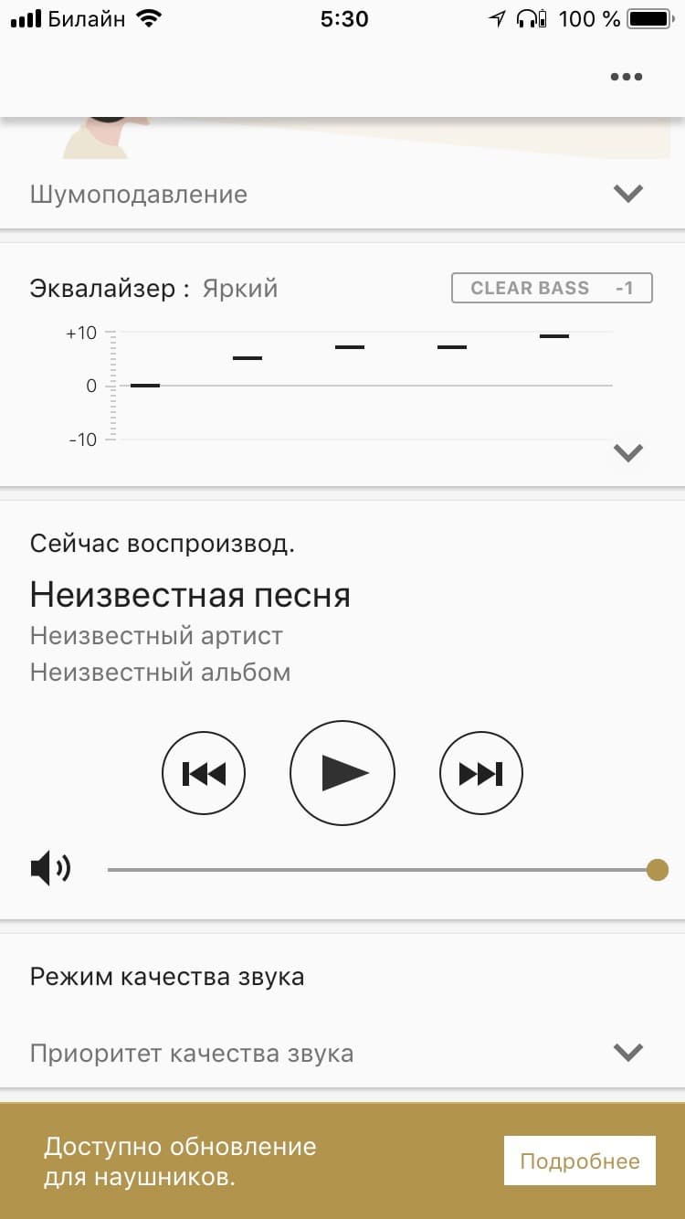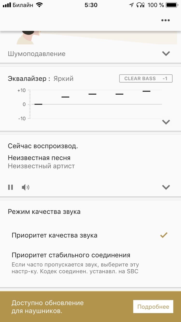 - включить или выключить шумоподавление, а также включить режим «Ambient Sound»