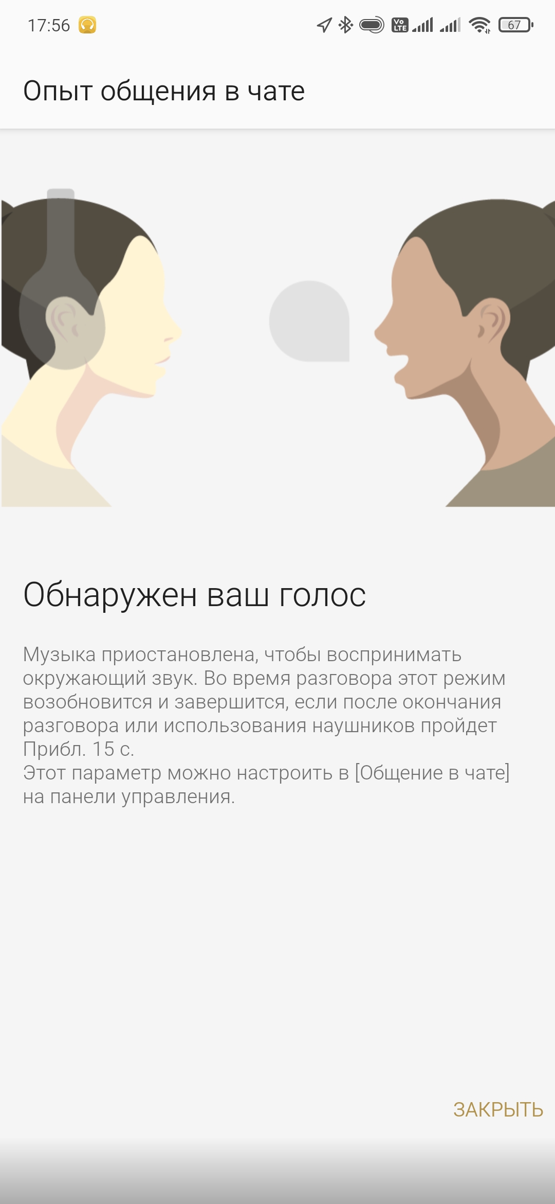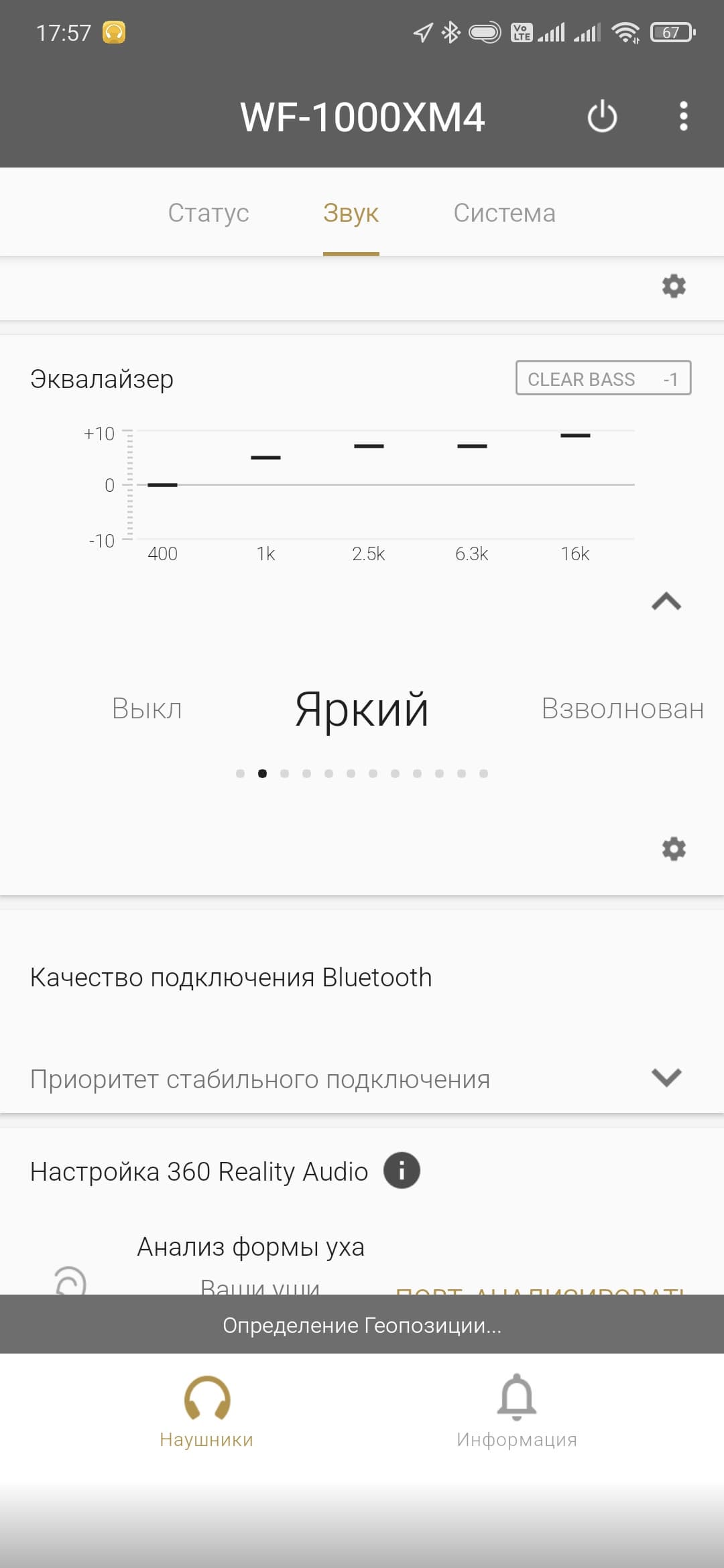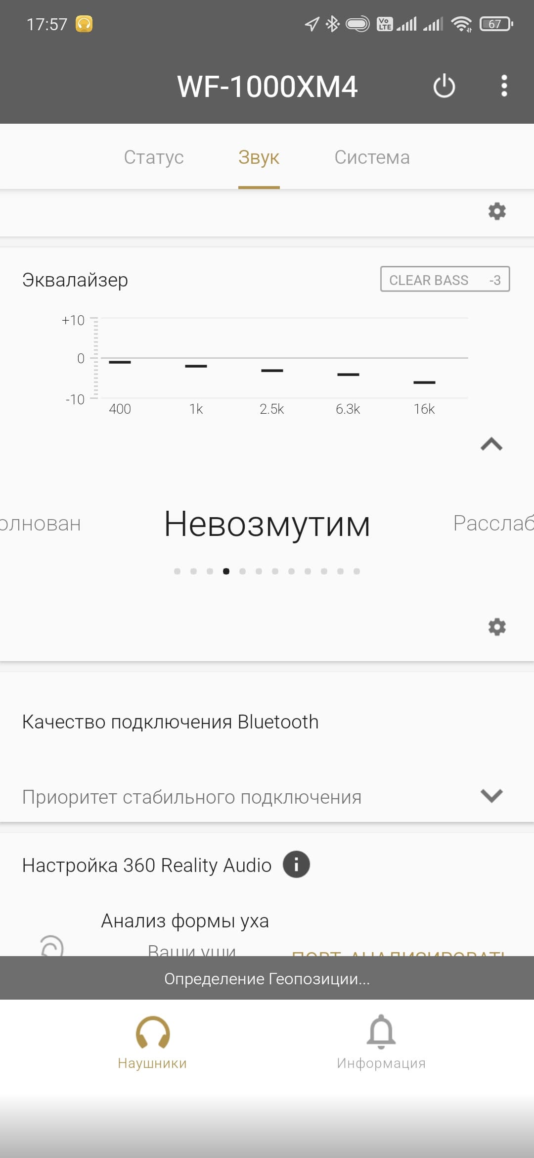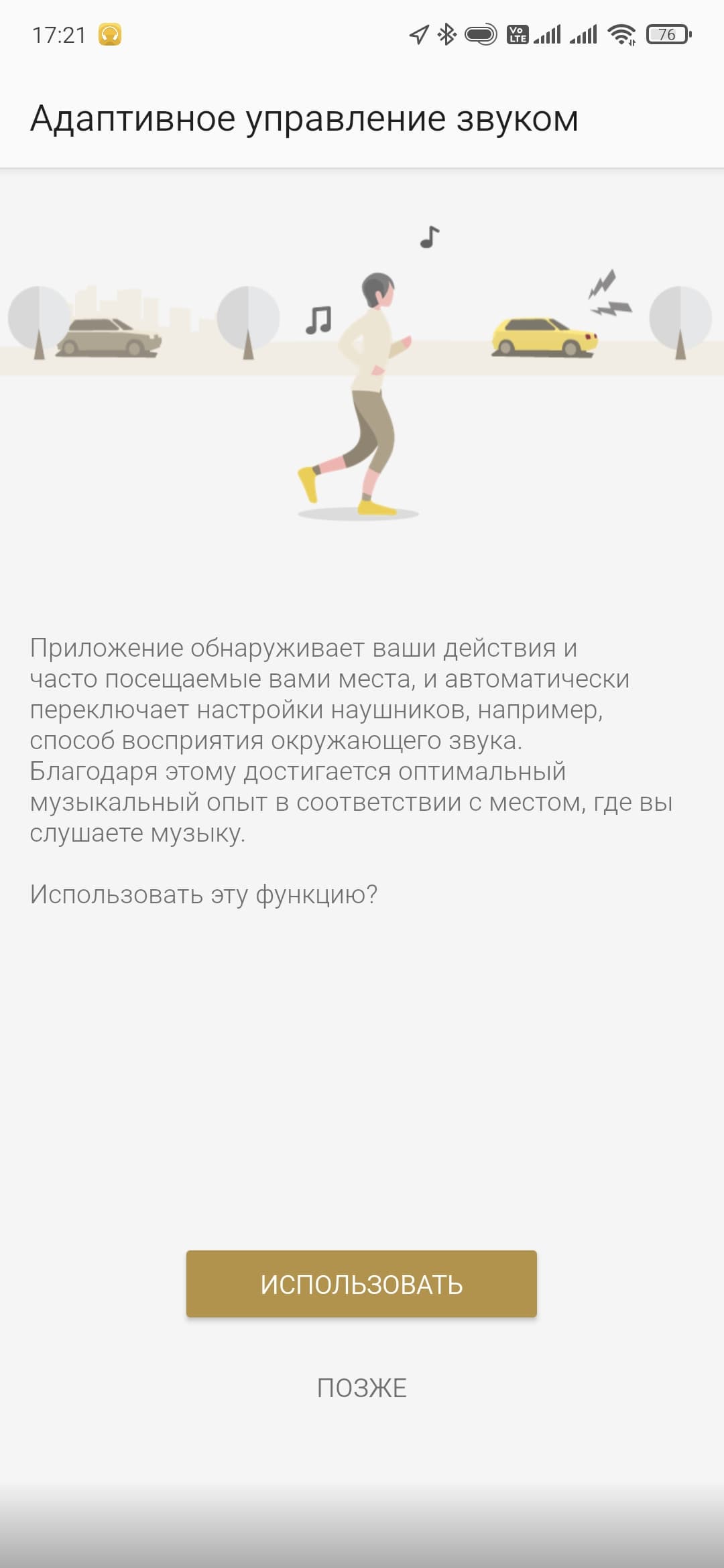 Ну и еще раз напомним про функцию адаптивного изменения настроек в зависимости от расположения и типа активности пользователя. Поначалу она кажется больше игрушкой, чем реально работающим механизмом повышения комфорта использования гарнитуры. Но со временем начинаешь понимать, что в ряде случаев это очень удобно. Например, во время пробежки может автоматически задействоваться режим подавления шума от ветра, при выходе на улицу активироваться режим приоритета стабильности связи, а по возращению домой — отключаться «шумодав» и задействоваться режим приоритета качества звука. Ну и так далее.