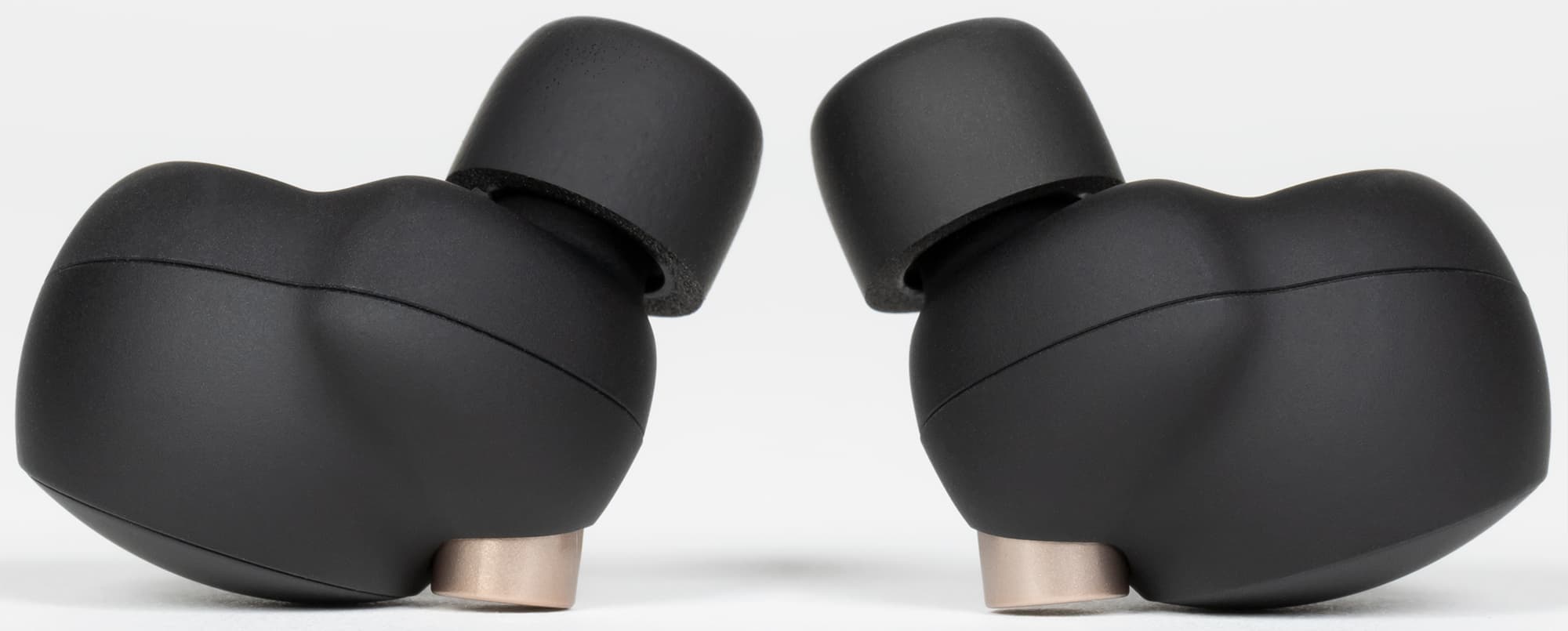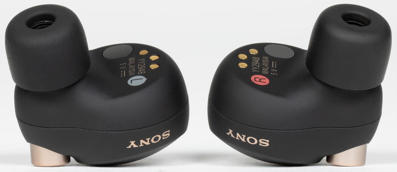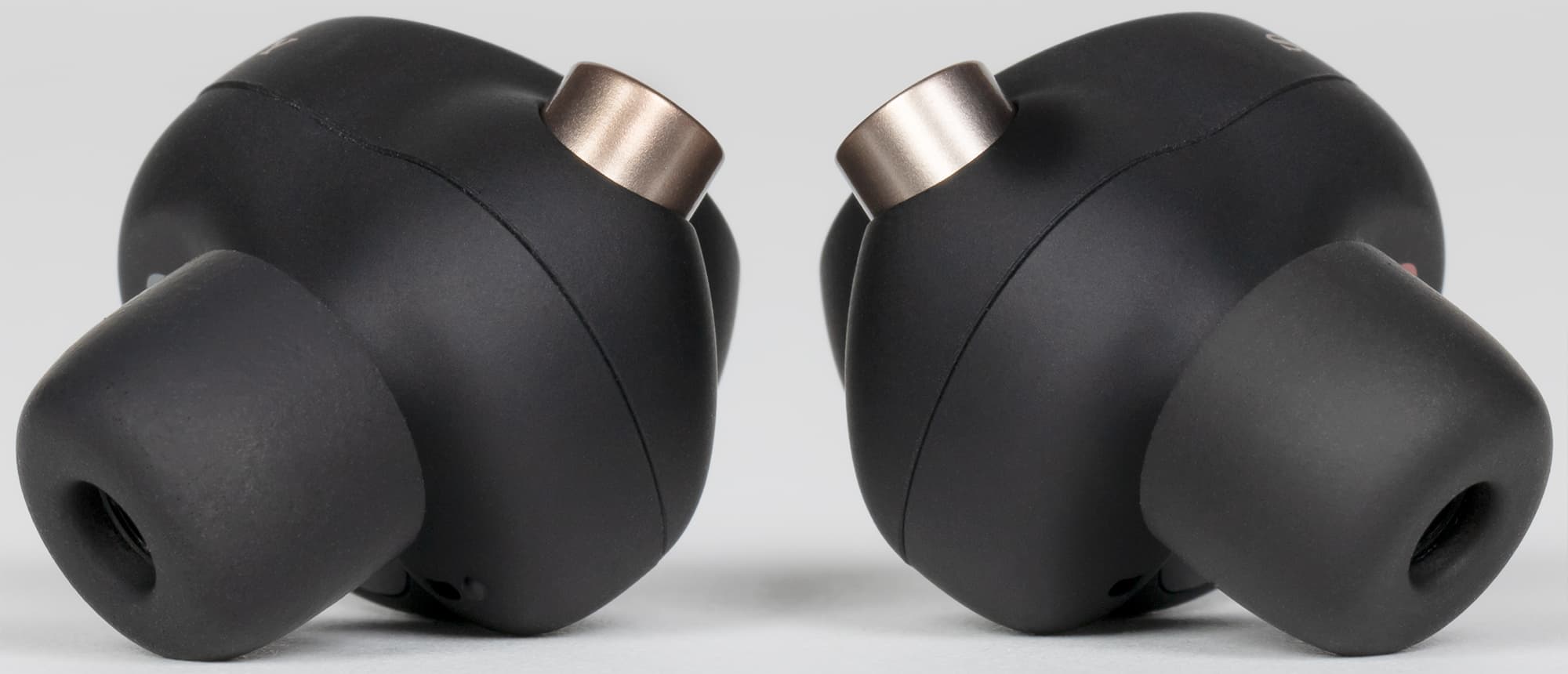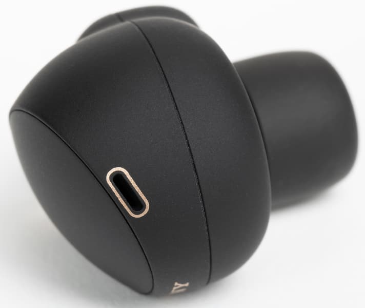 На боковую грань WF-1000XM4 нанесен золотистый логотип, внутренняя часть корпуса обладает рядом изгибов, призванных обеспечить лучшую опору на чашу ушной раковины.
