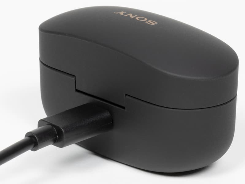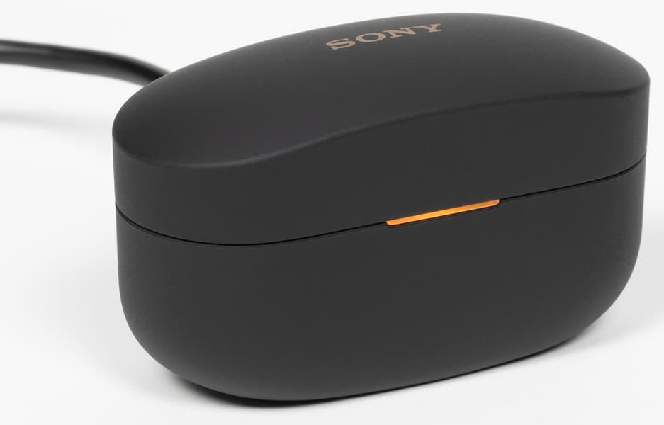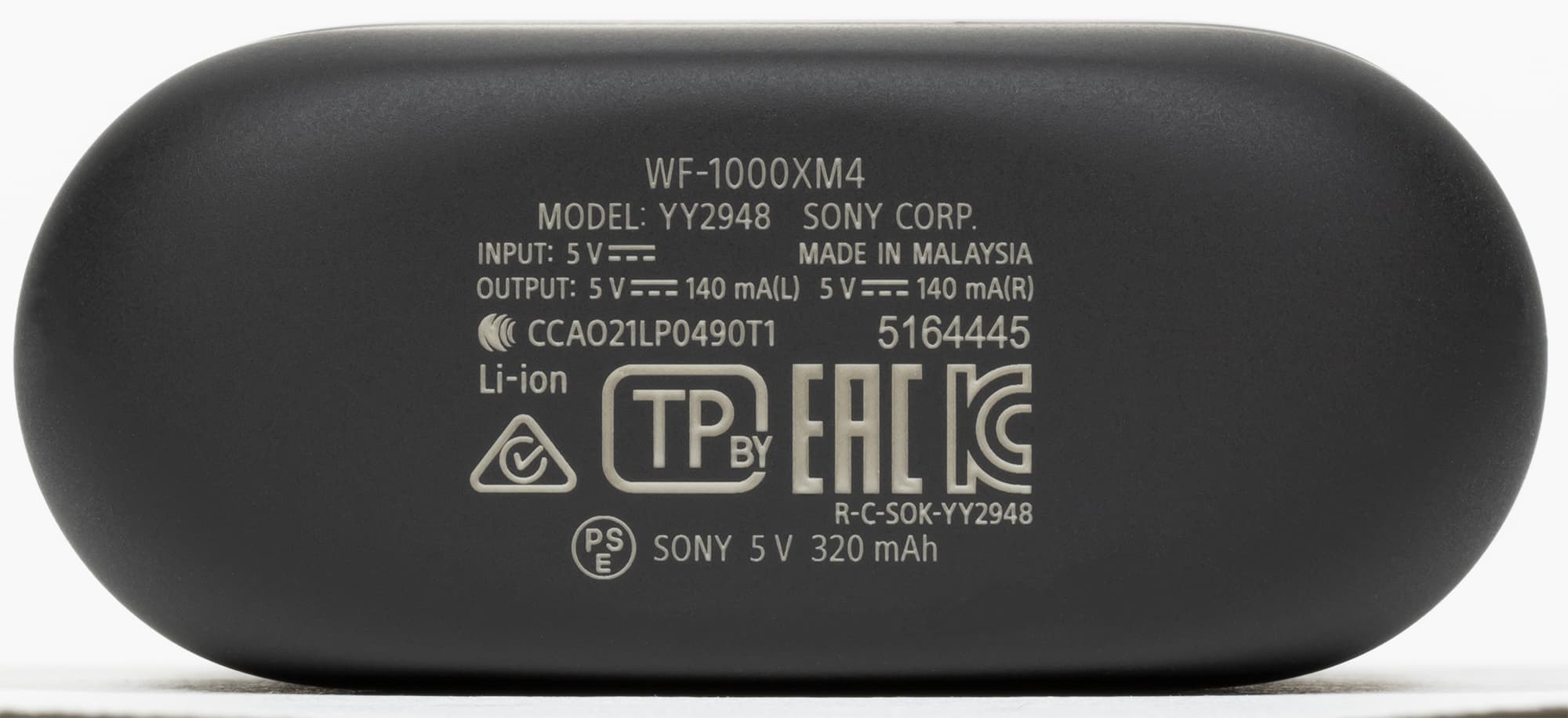 Если верить инструкции, после 5 минут зарядки в кейсе WF-1000XM4 может работать до часа в режиме воспроизведения музыки. У нас при включенном шумоподавлении и использовании LDAC она продержалась порядка 40 минут, в более экономичных режимах явно будет больше. В общем, без музыки остаться практически нереально. Зарядка кейса с нуля занимает порядка 1,5 часов, поддерживается как проводная, так и беспроводная по технологии Qi. Индикатор на передней панели во время зарядки горит оранжевым, если что-то идет не так — начинает мигать красным.