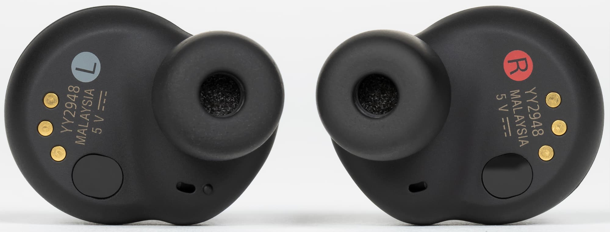 На внутренней поверхности размещена маркировка правого и левого наушников, окошки инфракрасных датчиков ношения, контакты для зарядки. Левый имеет небольшую выступающую точку возле звуковода, позволяющую отличить его от правого на ощупь.