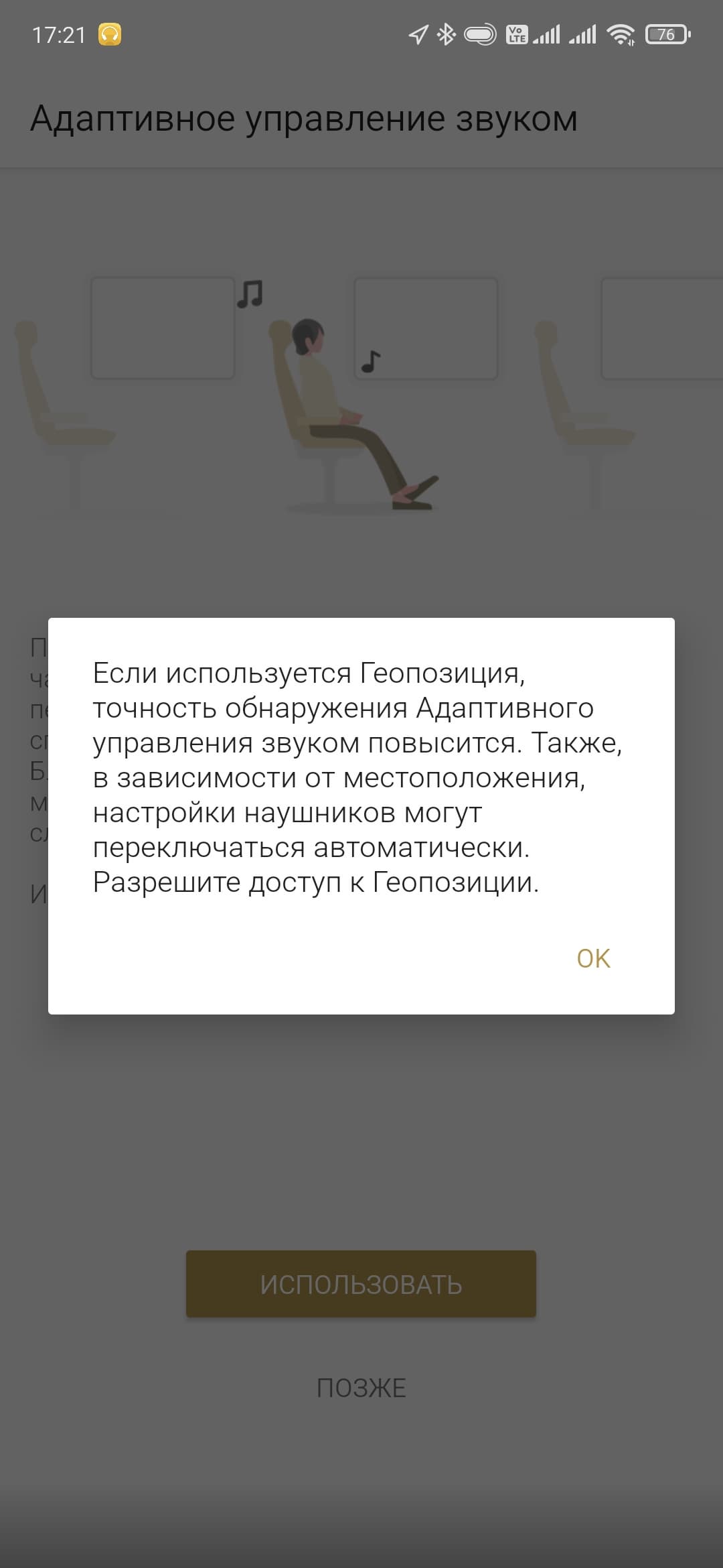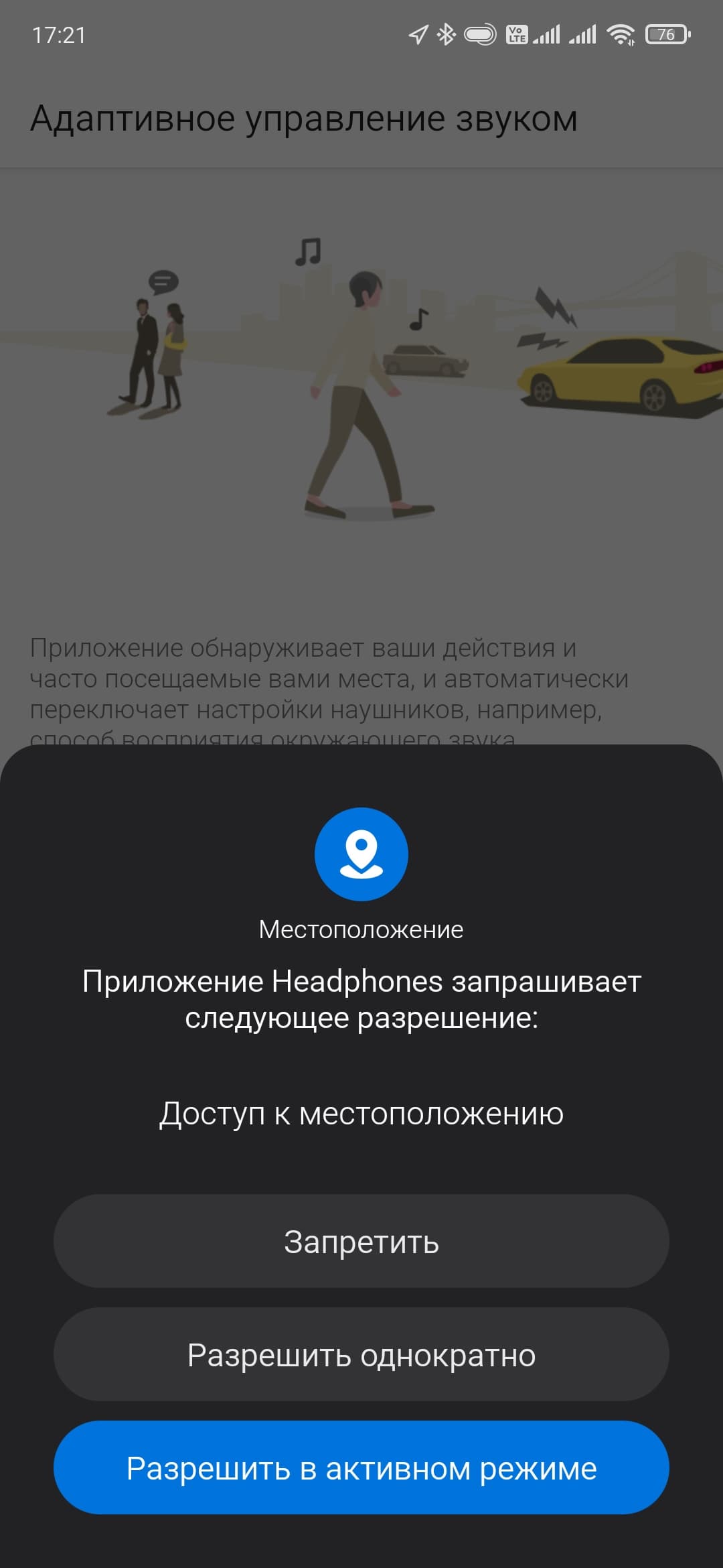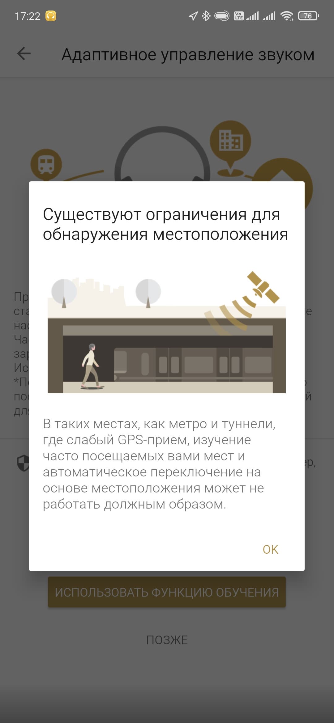 Для полноценной работы функции нужен доступ к геопозиции, который приложение настойчиво запрашивает. Некоторое время система собирает данные о часто посещаемых местах, запоминает используемые в них настройки и активирует их, как только пользователь вновь там оказывается. Довольно любопытная возможность, которая периодически действительно пригождается. Например, очень радует отключение «шумодава» при возвращении домой.