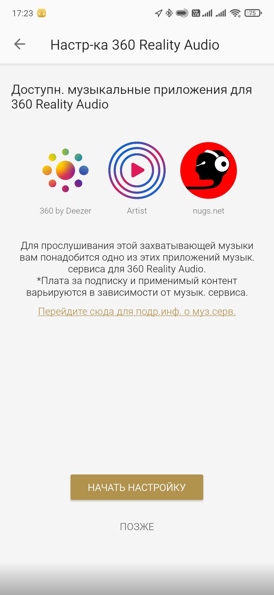 Сервисов предлагается несколько, мы решили выбрать Deezer. Вот только как мы не бились, оформить подписку нам не удалось — сервис упорно игнорировал введенный на сайте производителя наушников промокод. Возможно, действует он только на новые аккаунты, хотя впрямую это нигде не указано. В общем, вопрос можно было как-то решить, но мы пожалели на это времени — подписок под рукой и так в достатке, а познакомиться с 360 Reality Audio можно и без этого.