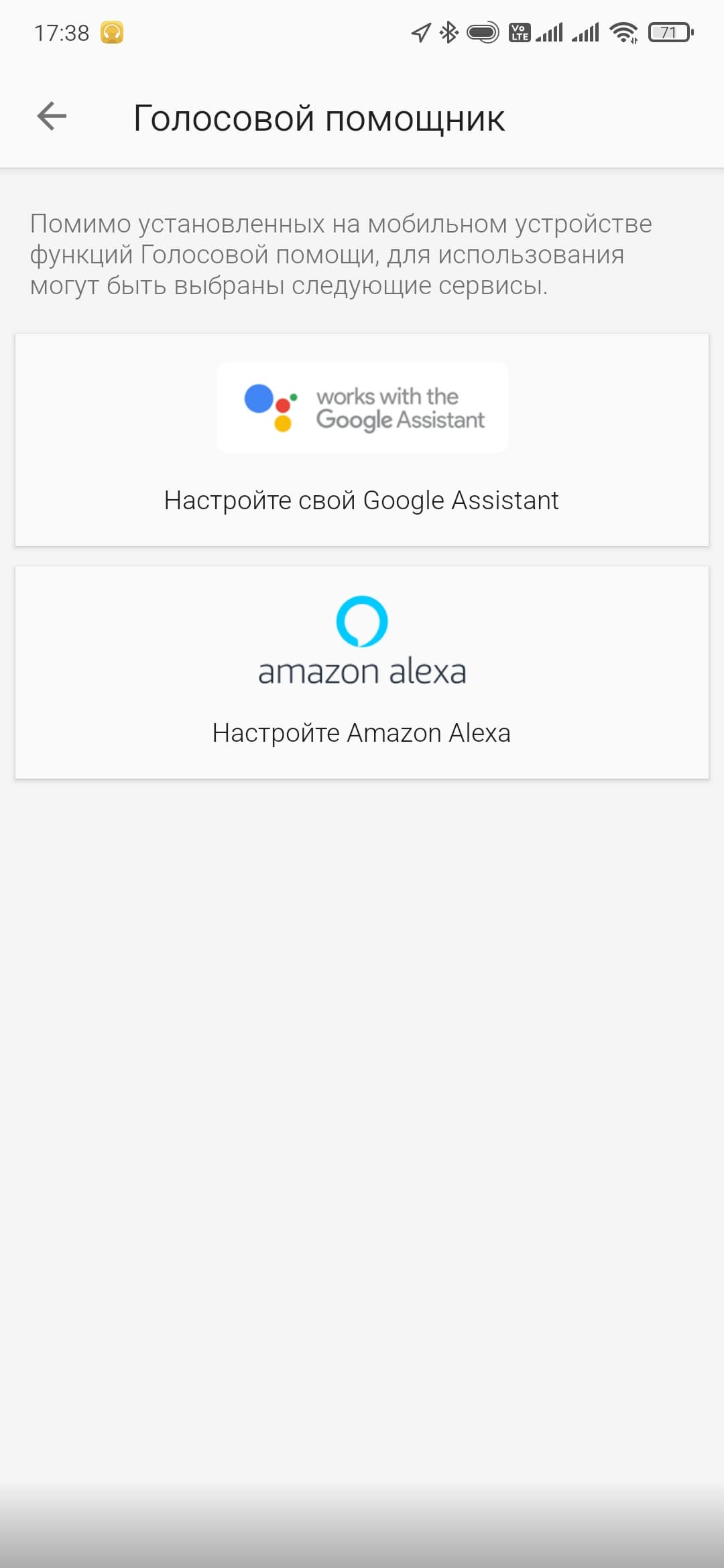 Далее можно настроить голосового помощника. На выбор предлагаются Google Assistant и Alexa. Последняя в России официально не поддерживается, так что выбора особо и нет. Вызов помощника можно осуществлять касанием сенсора любого из наушников — это мы еще увидим чуть ниже. Следом приложение уведомляет о наличии обновления прошивки, но установку пока не начинает.