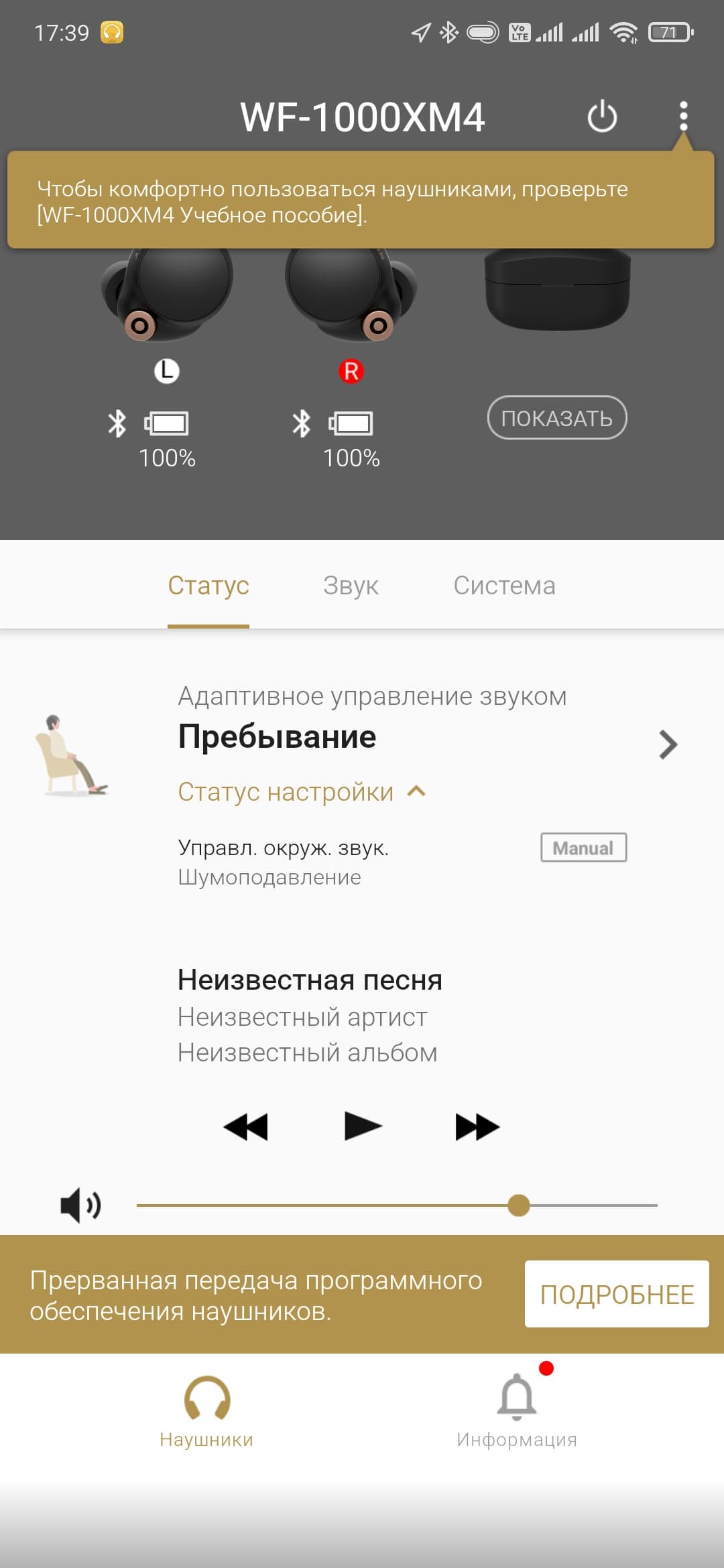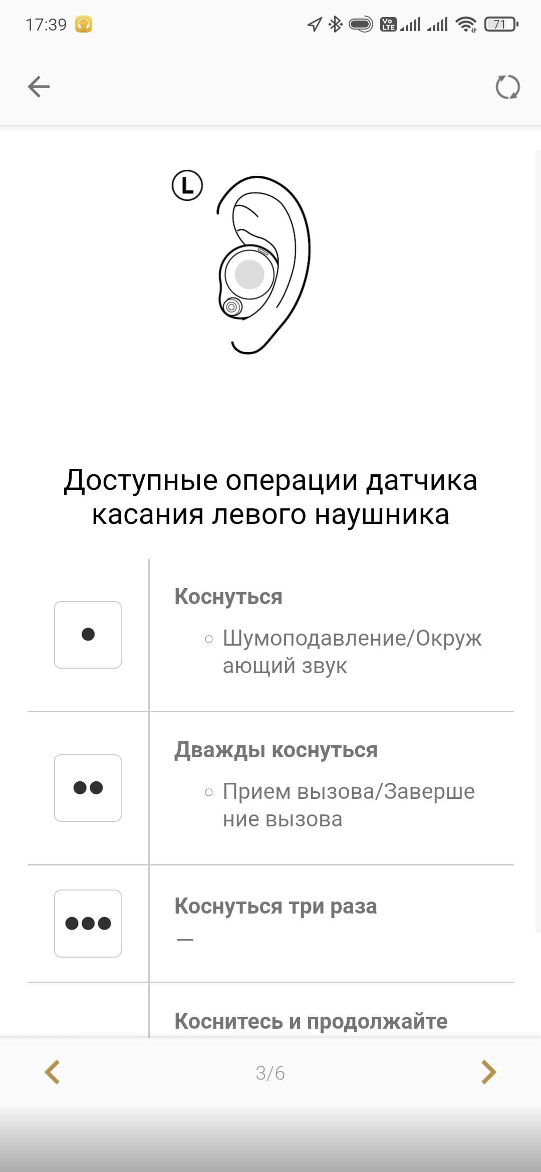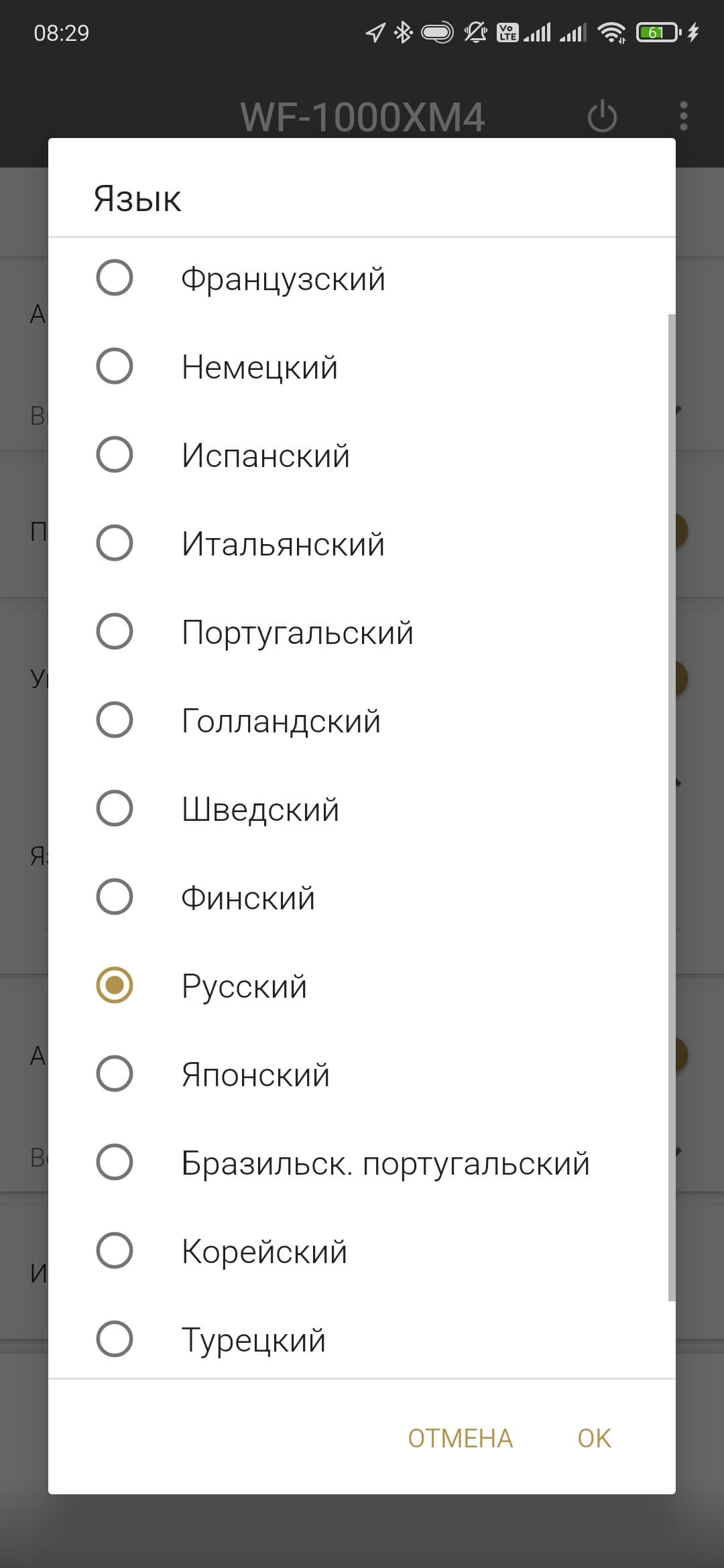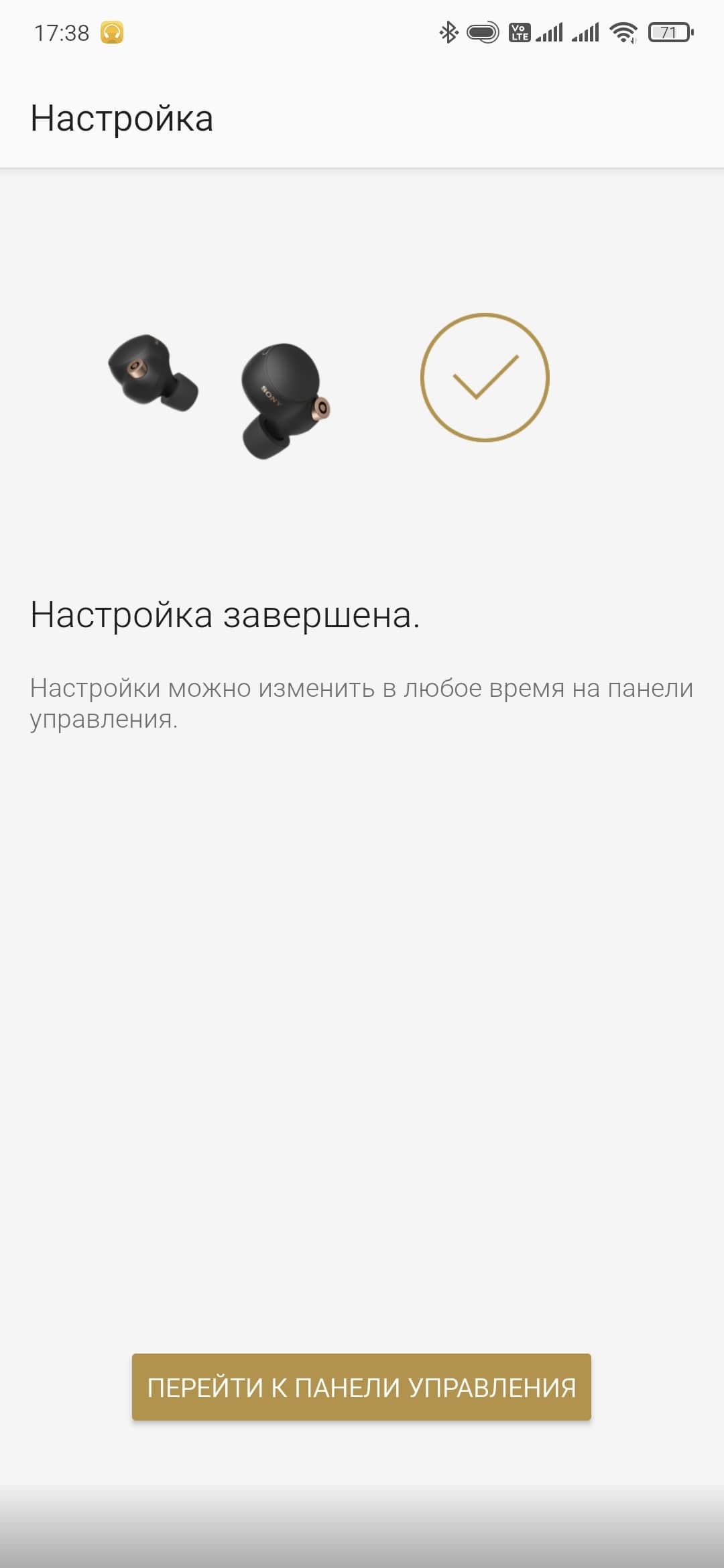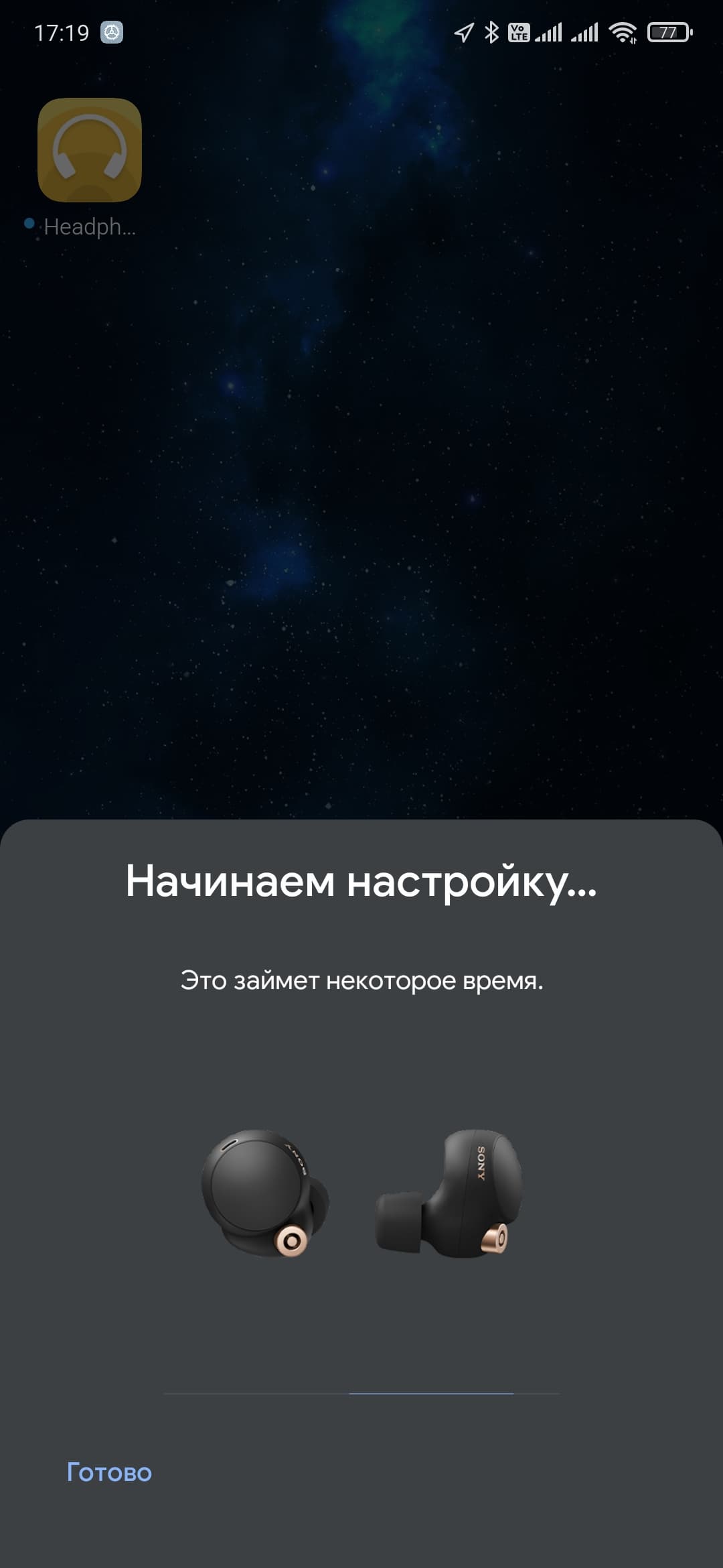 Обо всех своих действиях WF-1000XM4 оповещает голосовыми уведомлениями. По умолчанию они воспроизводятся на английском, но язык можно изменить в настройках (в том числе, и на русский). Ну и, наконец, если хочется начать все сначала — можно заново запустить гид по настройке, на который мы уже посмотрели выше.