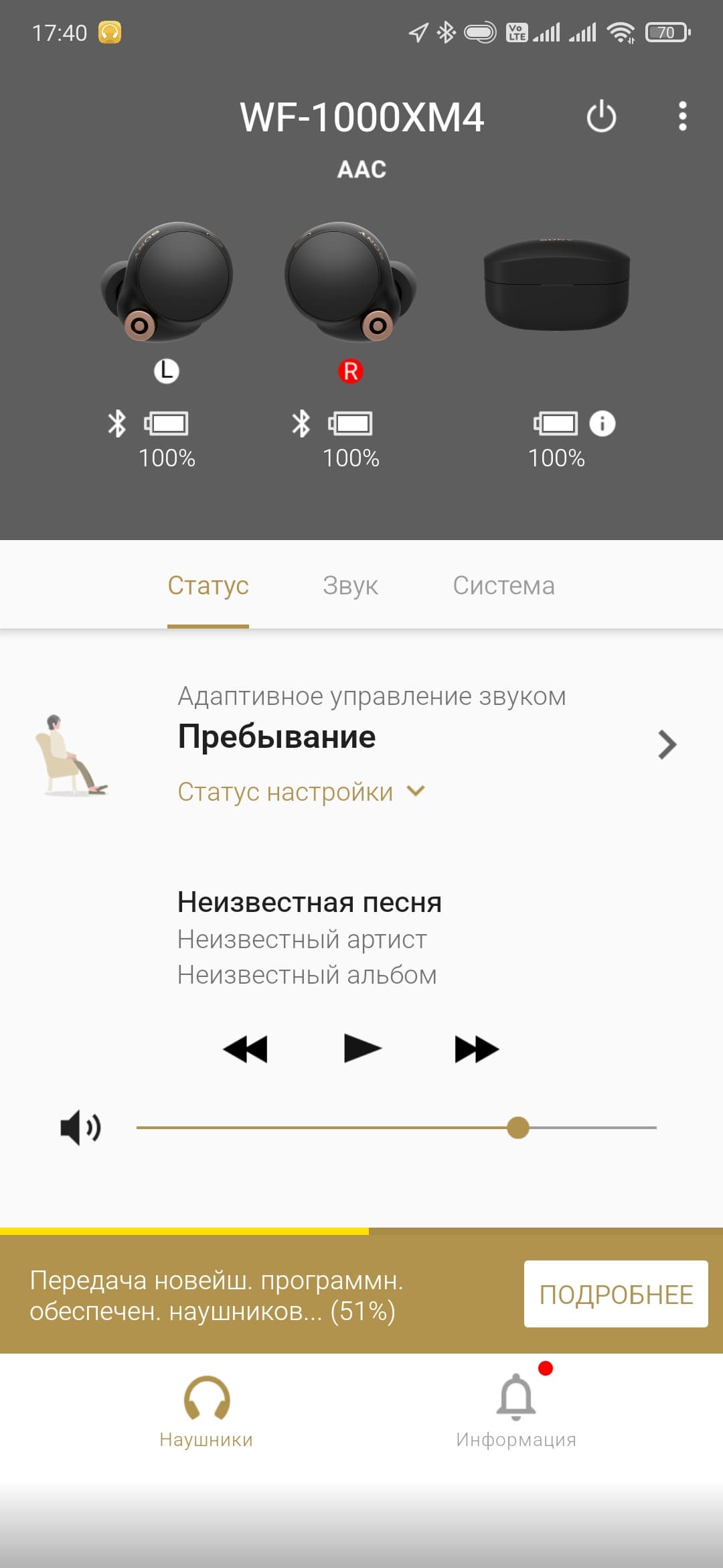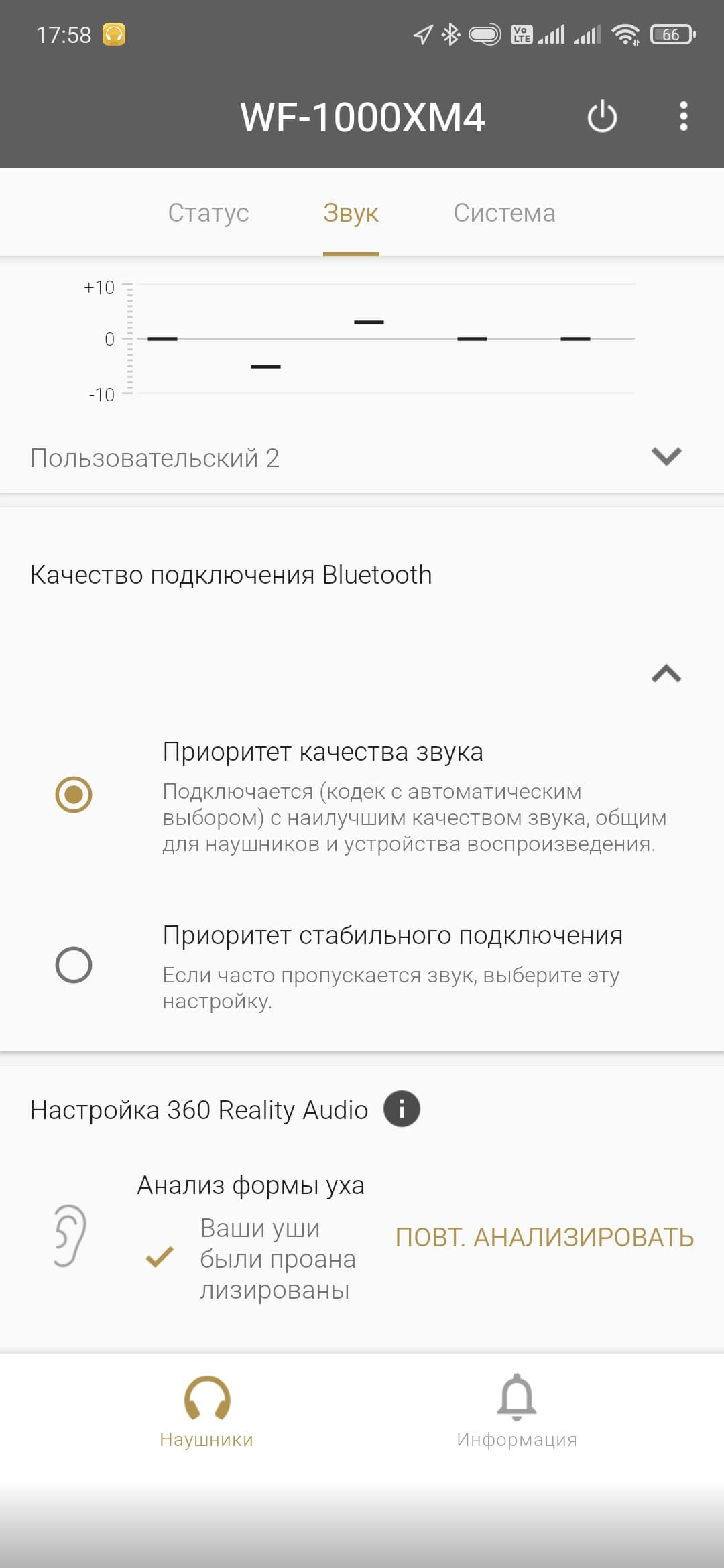 Ну и, наконец, посмотрим на уже упомянутую возможность переключаться между режимами приоритета качества звука или стабильности подключения — тут все просто и понятно. В самом крайнем случае можно также переключиться на кодек SBC из меню настроек гаджета, но нам за все время использования наушников делать этого не приходилось ни разу.