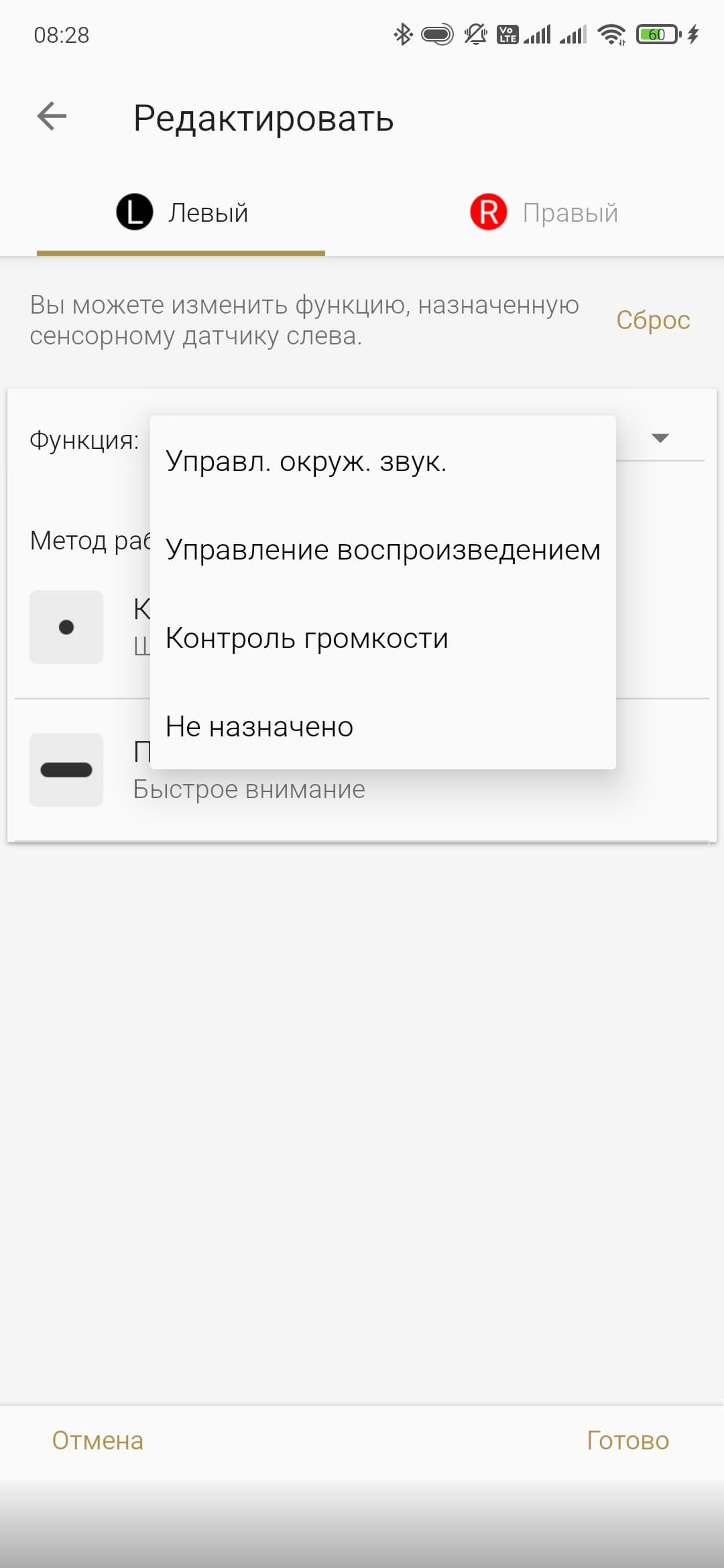 Ну и, конечно, есть возможность настроить профиль управления под себя, изменив его просто до неузнаваемости. Поэтому говорить о предустановленном мы сегодня не будем — в этом нет смысла. Отдельно отметим опцию управления громкостью с помощью сенсоров на наушниках — многие протестированные гарнитуры такой возможности не дают, тут же она есть. Одно из действий — это «пролистывание» режимов работы гарнитуры: шумоподавление — «звуковая прозрачность» — обе функции отключены. Если один из вариантов не нужен, можно исключить его из пролистывания, убрав соответствующую галочку в настройках.