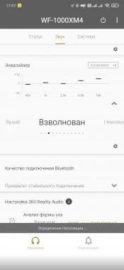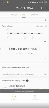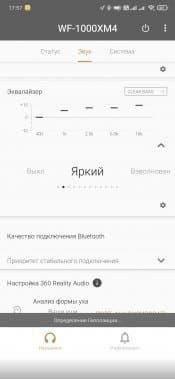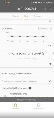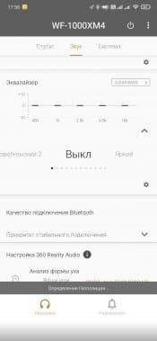 Как уже говорилось выше, присутствует у WF-1000XM4 и так называемая функция «звуковой прозрачности» при активации которой микрофоны гарнитуры улавливают внешние звуки и транслируют их в динамики. Удобно, когда хочется быстро услышать объявление в транспорте, пообщаться с кассиром в магазине или ответить на вопрос прохожего. Включить ее можно тапом по сенсорной зоне, а можно голосом — наушники умеют определять, когда вы разговариваете. Делается это вполне корректно, но для любителей периодически подпевать вполголоса такой вариант, конечно, не подходит — гарнитура регистрирует даже слабое «мычание». Ну а дальше у нас идет эквалайзер…