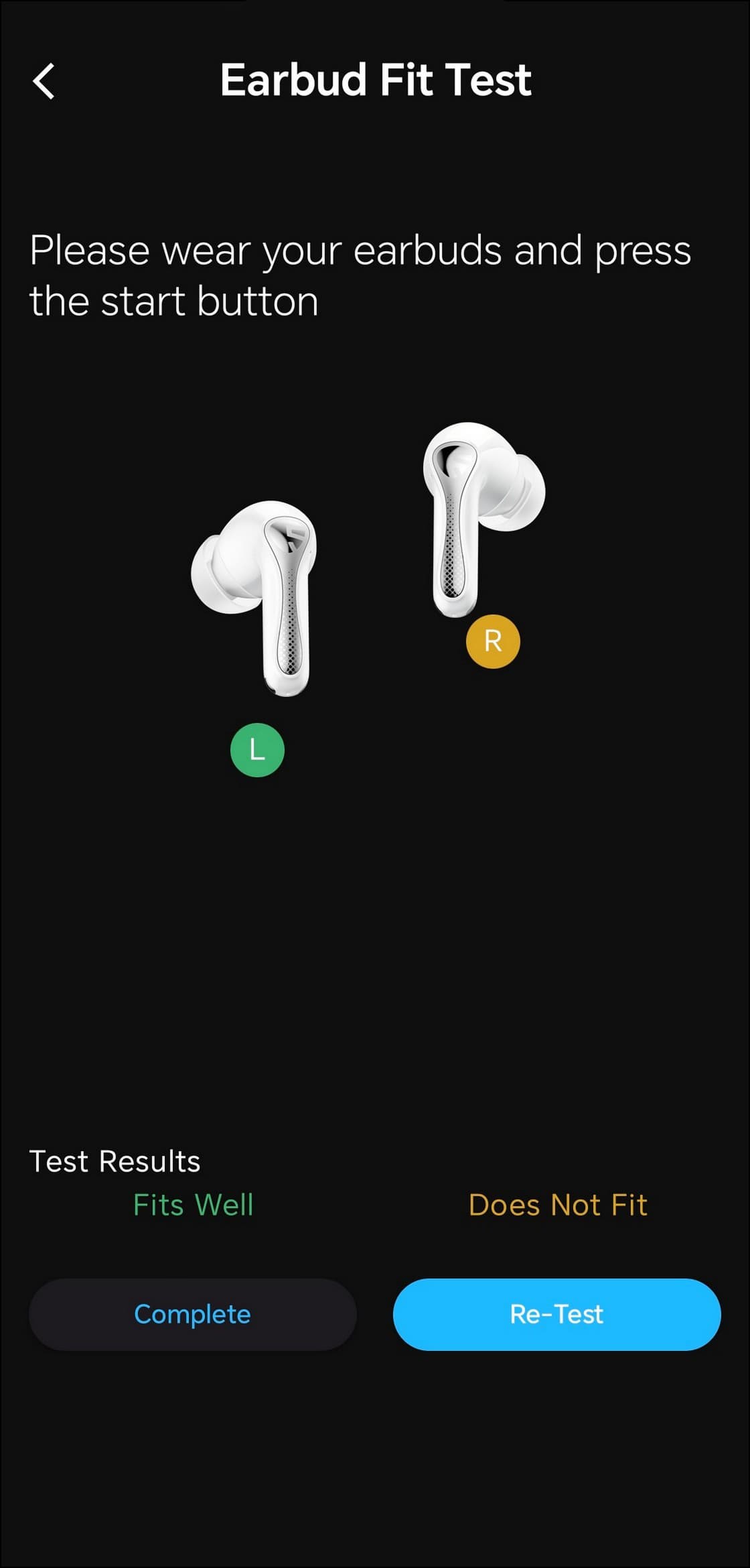Туда же «спрятали» и тест прилегания, который организован классическим образом: наушники воспроизводят тестовый сигнал, а внешние микрофоны фиксируют, выходит ли он наружу. Если они его улавливают, посадка считается неплотной — предлагается скорректировать положение гарнитуры. Обычно в подобных тестах используется приятная мелодия, а здесь звучит довольно неприятный низкочастотный тон. К счастью, длится он недолго — вытерпеть можно. Мы традиционно ослабили один из наушников, чтобы проверить, заметит ли алгоритм изменение — заметил, все работает корректно.