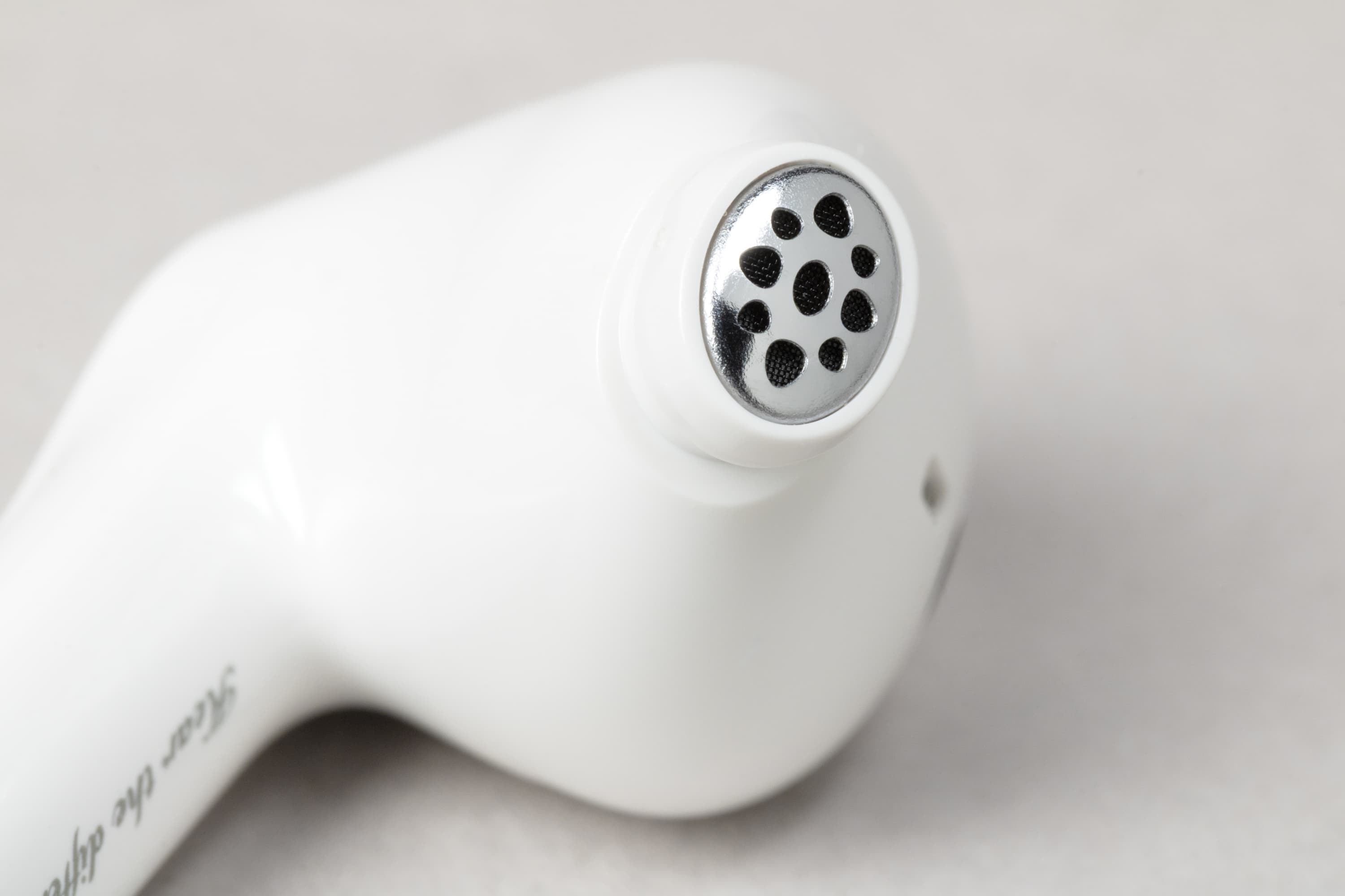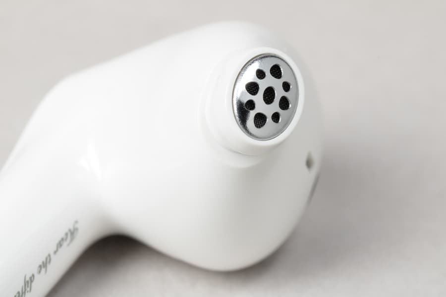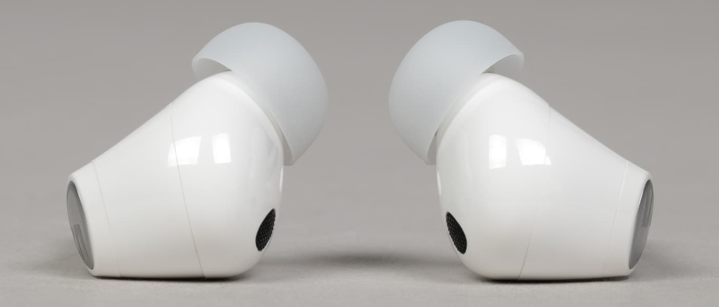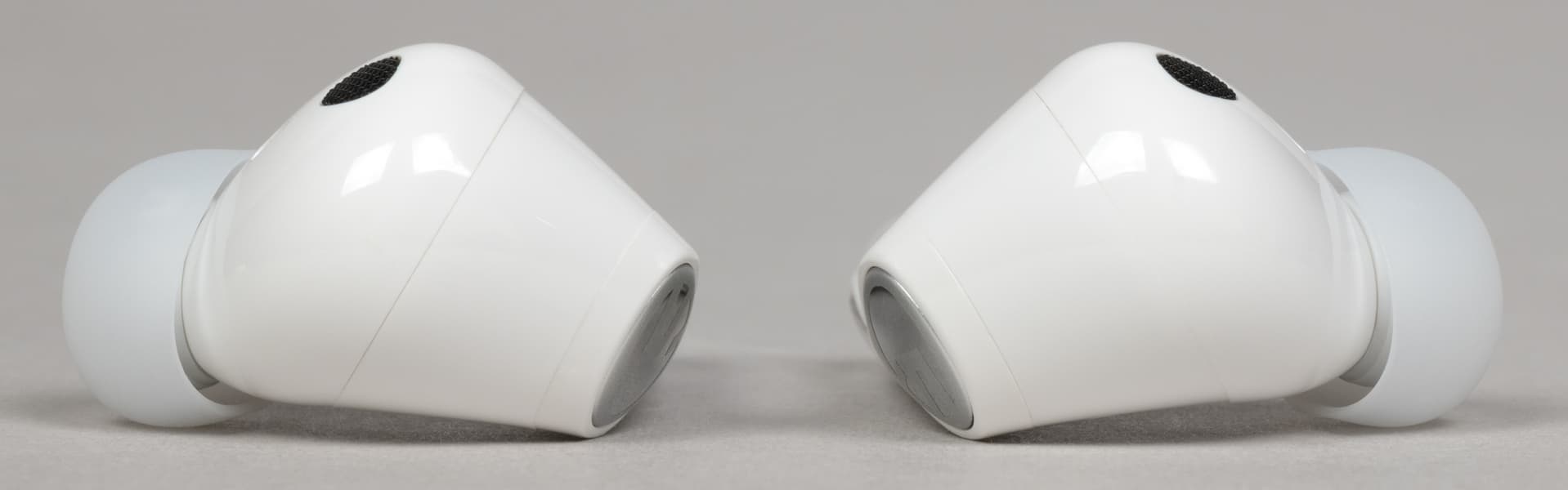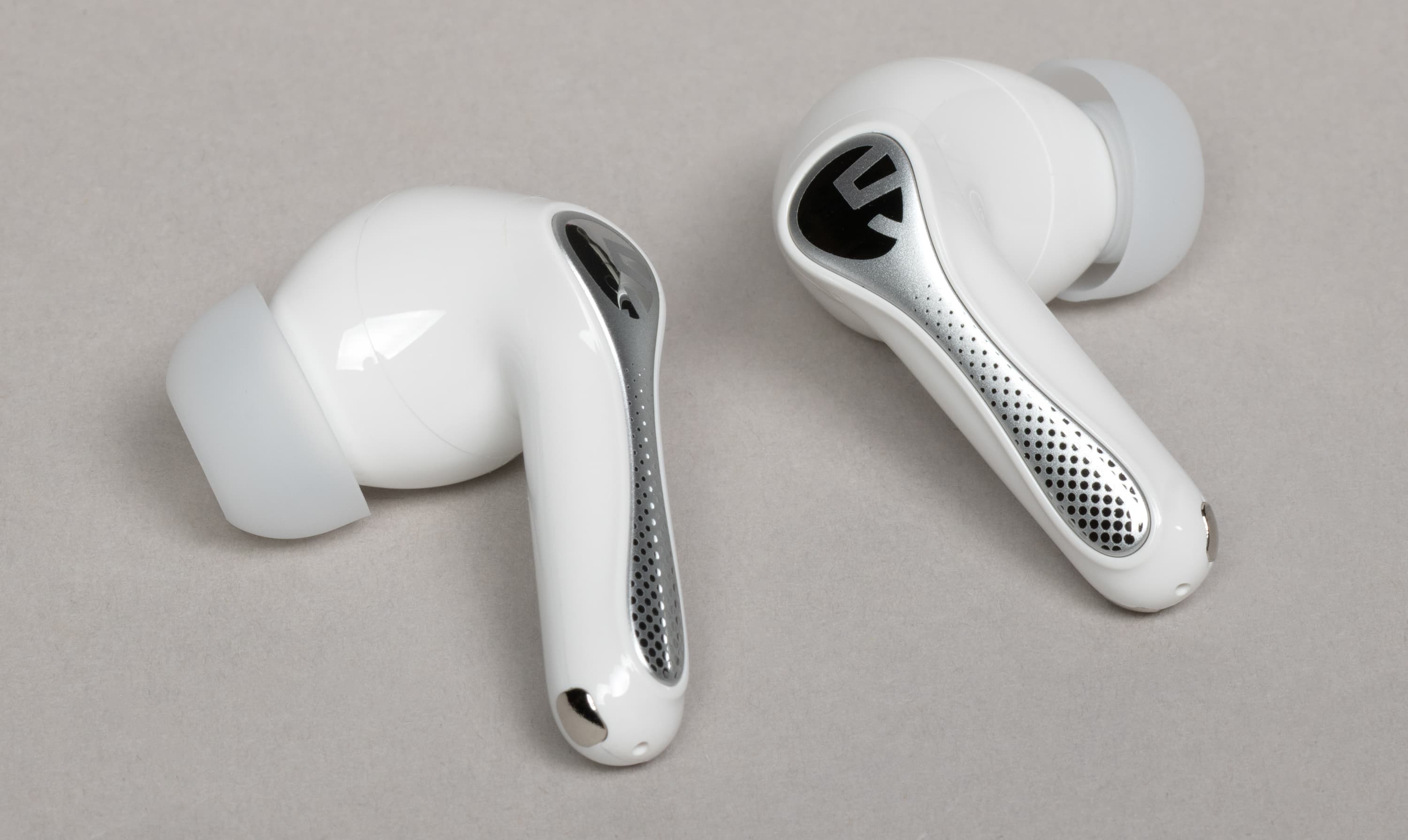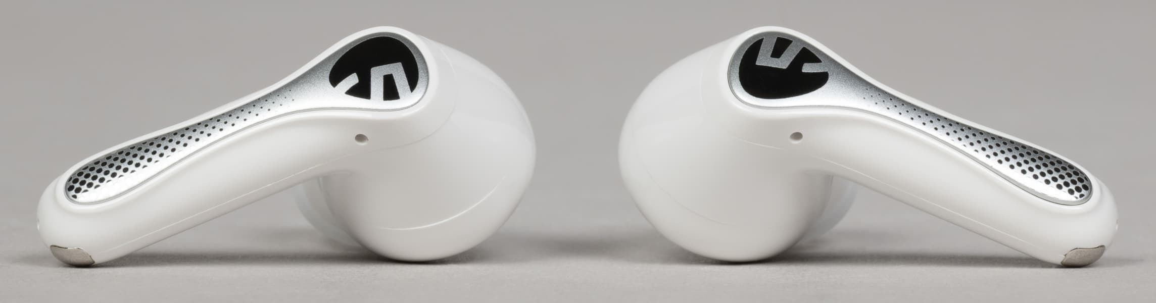 На внутренней поверхности округлой части расположены два отверстия: одно покрупнее, прикрытое металлической сеткой, и второе — меньшего диаметра. Вероятнее всего, за первым скрывается внутренний микрофон системы активного шумоподавления, а второе выполняет компенсационную функцию — служит для сброса избыточного давления при работе динамического драйвера.