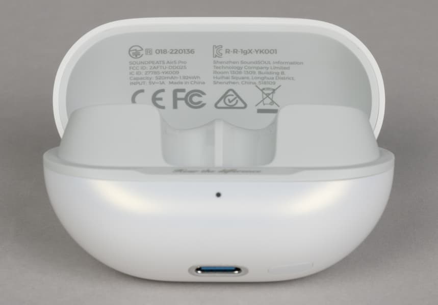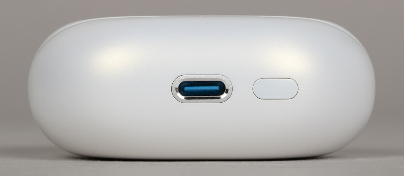 На дне кейса находятся порт USB Type-C для зарядки и кнопка активации Bluetooth-сопряжения, которая размещена заподлицо с корпусом и нажимается с заметным усилием, чтобы исключить случайные нажатия.