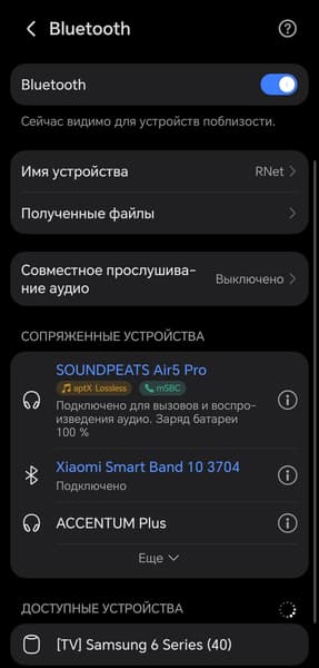 Ну и последний вариант — включение режима LE Audio. Это поддержка современного стандарта Bluetooth LE Audio, использующего энергоэффективный канал Bluetooth Low Energy и кодек LC3. Он дает более высокое качество на низких битрейтах, меньшую задержку и сниженное энергопотребление. Плюс поддерживает многопоточное и широковещательное аудио (Auracast). По заявлениям разработчиков, благодаря более эффективному сжатию LC3 при 80—96 кбит/с обеспечивает сопоставимое или даже лучшее субъективное качество, чем SBC при 160—192 кбит/с. Пока все это выглядит как «кодек будущего», но поддерживается лишь современными устройствами и иногда требует активации через меню гаджета.