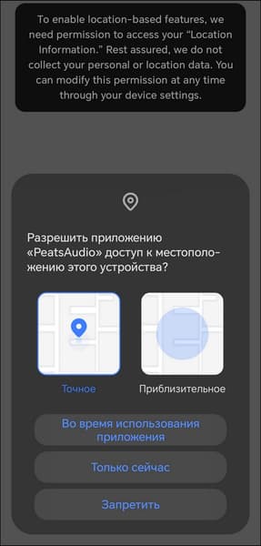 В конце первоначальной настройки пользователю предлагают активировать функцию поиска гарнитуры, для чего нужно разрешить доступ к геопозиции. Для отображения используется карта с подписями на китайском — выглядит экзотично, но интуитивности интерфейсу это не добавляет. Перевода на русский, кстати, тоже нет, а большая часть информации не продублирована значками или иконками — так что знание хотя бы какого-нибудь иностранного языка здесь явно пригодится. На этом подготовка к работе закончена — оказываемся на главном экране.