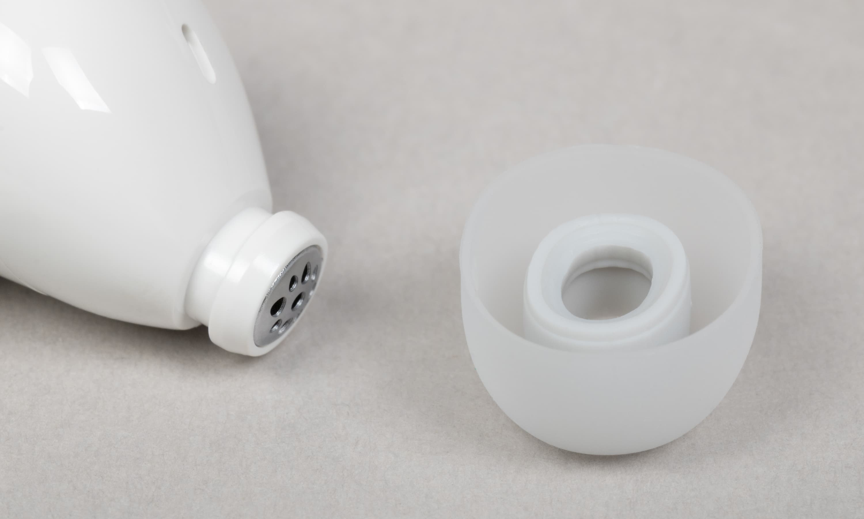 Силиконовые насадки фиксируются с помощью довольно массивного выступа по краю звуковода. Держатся они надежно, при этом снимаются и устанавливаются без особых усилий.