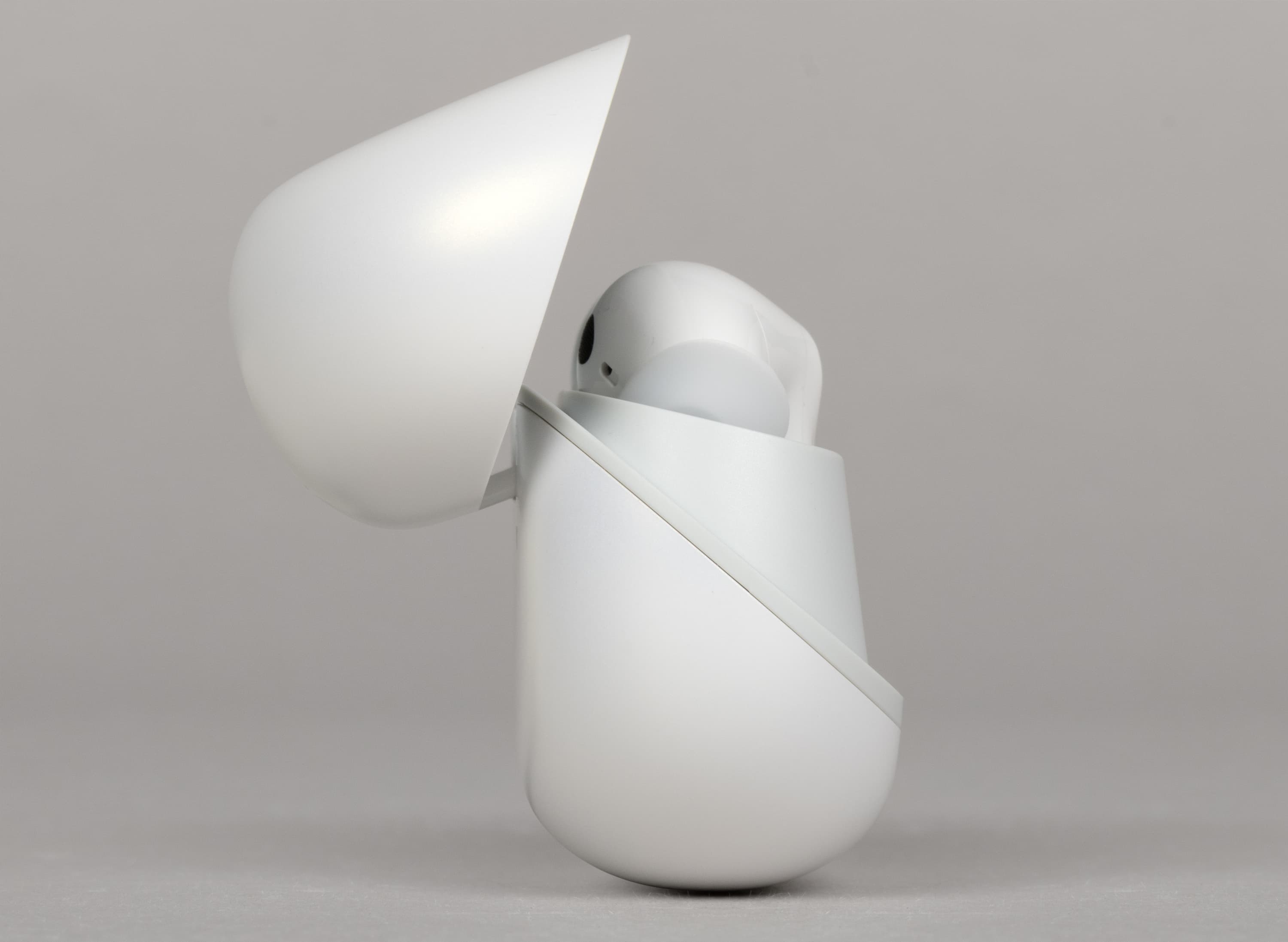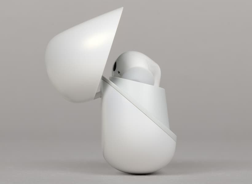 Крышка крупная и легко откидывается пальцем той же руки, которая удерживает футляр. Доводчик предусмотрен и срабатывает примерно на середине хода, он же обеспечивает надежную фиксацию в крайних положениях. Открытая крышка немного нависает над слотами для наушников, но не мешает их доставать: они вынимаются движением на себя и чуть вверх — достаточно обхватить округлую часть и слегка потянуть.