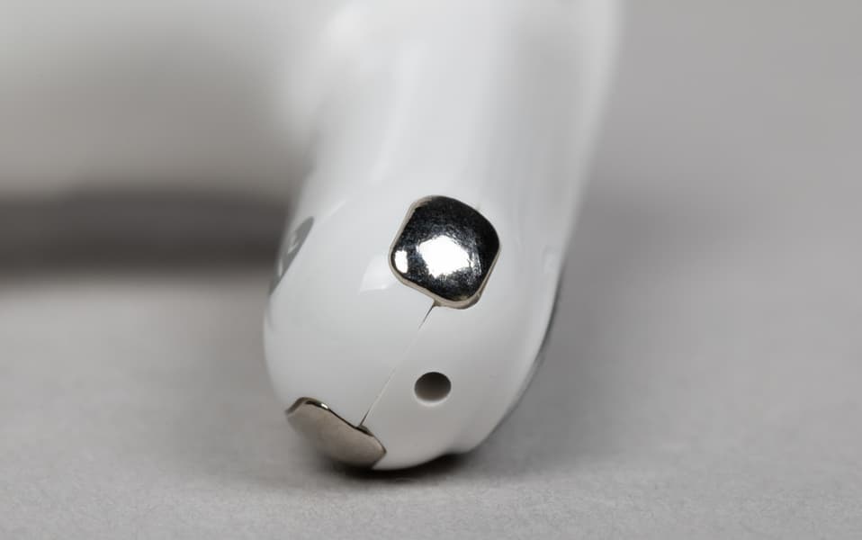 В основании ножек, рядом с округлой частью корпуса, расположены круглые отверстия микрофонов системы активного шумоподавления.