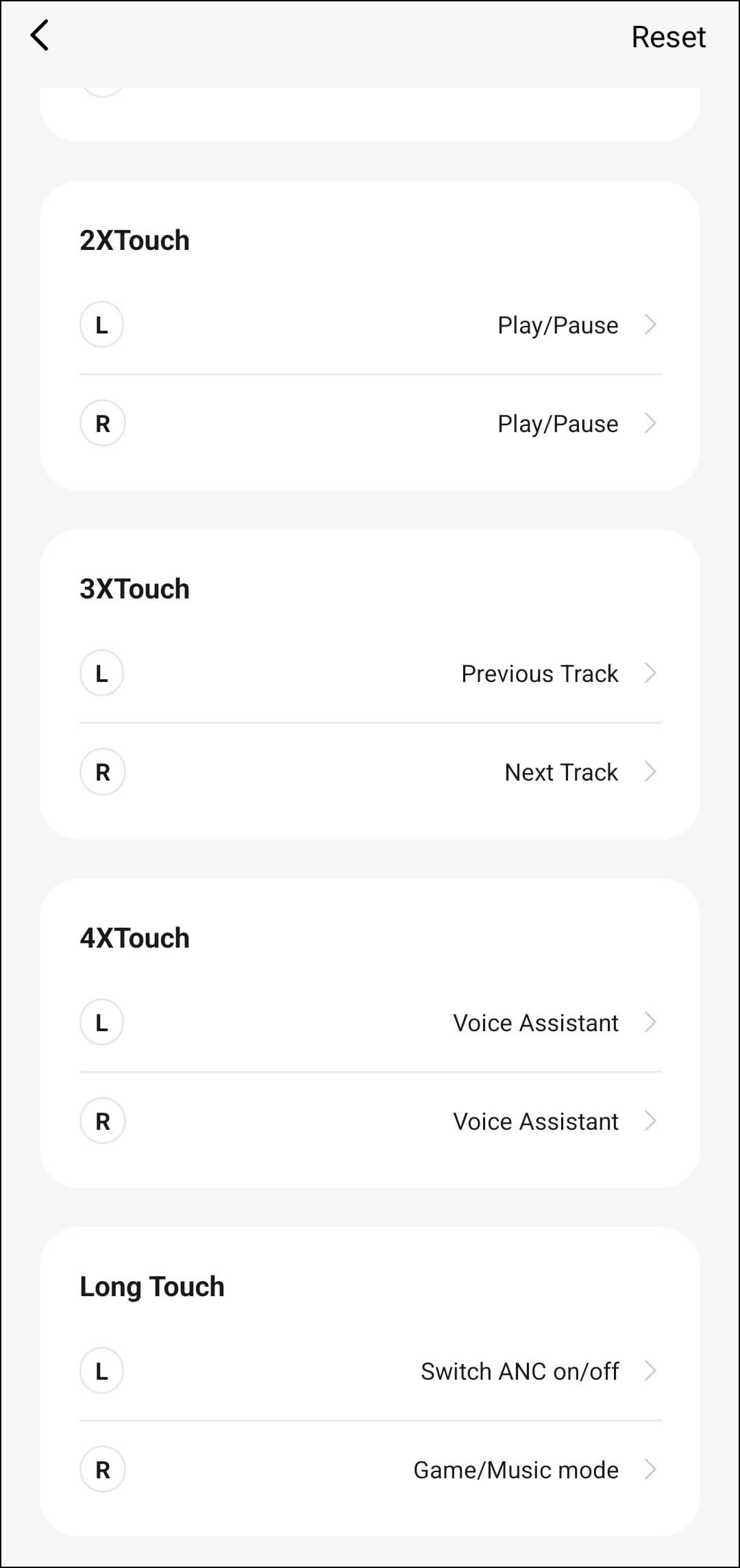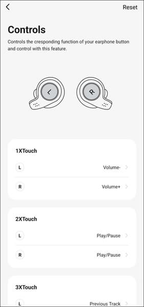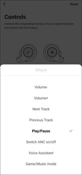 При этом управление еще и гибко настраивается из приложения: система умеет различать правый и левый наушники, для каждого типа касания есть крайне обширный список возможных действий.