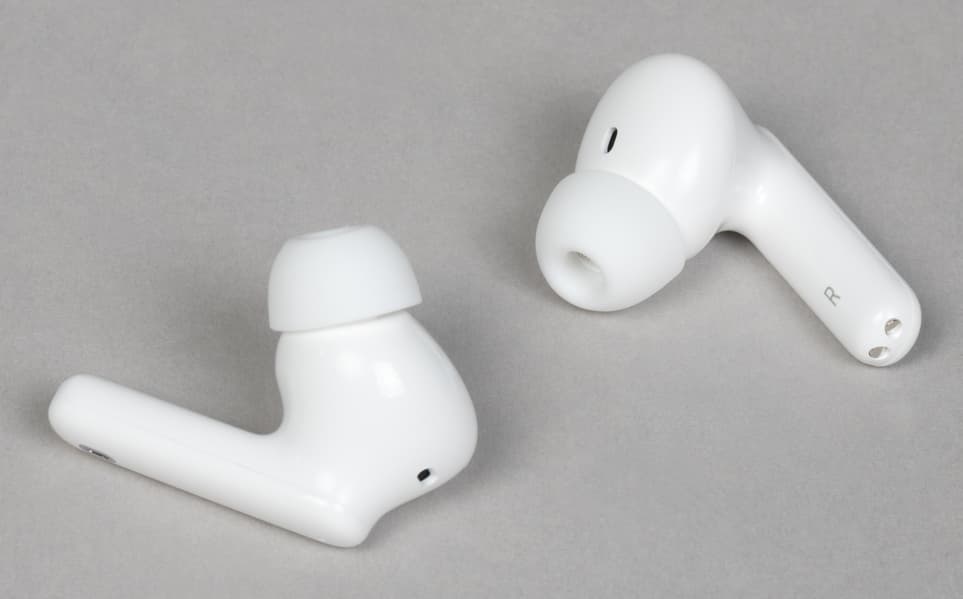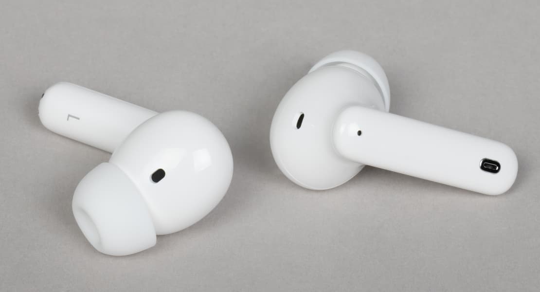 Наушники выполнены в классическом формате — округлая часть с ножкой. Внешне это типичная TWS-гарнитура, и при этом вовсе не обязательно бюджетная. Выглядят наушники гораздо солиднее, чем можно было бы ожидать, исходя из их стоимости.